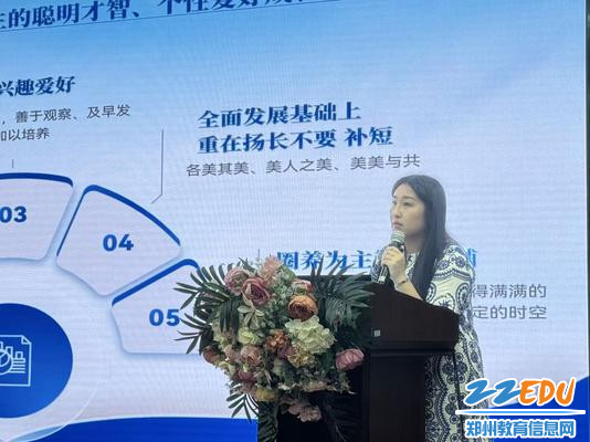 张晓宇老师以“常规管理严爱相济,拔尖创新深耕细耘”为主题,分享班级管理经验。她提出在班级管理中构建双平台育人体系:一是学业提升平台,以中考为导向,严爱相济、强化落实,助力学生升入理想高中;二是拔尖创新平台,注重激发潜能与个性成长,培养问题意识和兴趣特长,在全面发展的基础上重在“扬长”而非“补短”,推动形成“各美其美、美人之美、美美与共”的包容性班级文化;三是班级管理实行“圈养为主、散养为辅”,赋予学生自主安排学习与休息的权利,鼓励自主规划和体育锻炼,促进学生全面而有个性地发展。