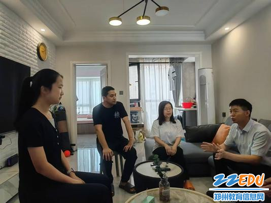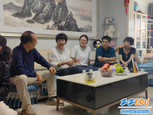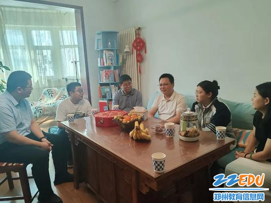 在小倪同学(化名)家中,班主任赵梦煜老师介绍了学生的基本情况,小倪同学沟通了自己在校的学习情况。郑州市第九中学校长袁伟民表示,预习和复习对于高二年级的学生非常重要;也强调学习过程中要积极与老师沟通,找到痛点,解决难题;日常学习生活注意锻炼身体,提高身体素质。学生提到将来想要报考中医药类大学学习针灸,学校副校长陈琳对学生给予鼓励与祝福。在家访过程中,教师们围绕家长最关心的问题,提供了精准的家庭教育指导。