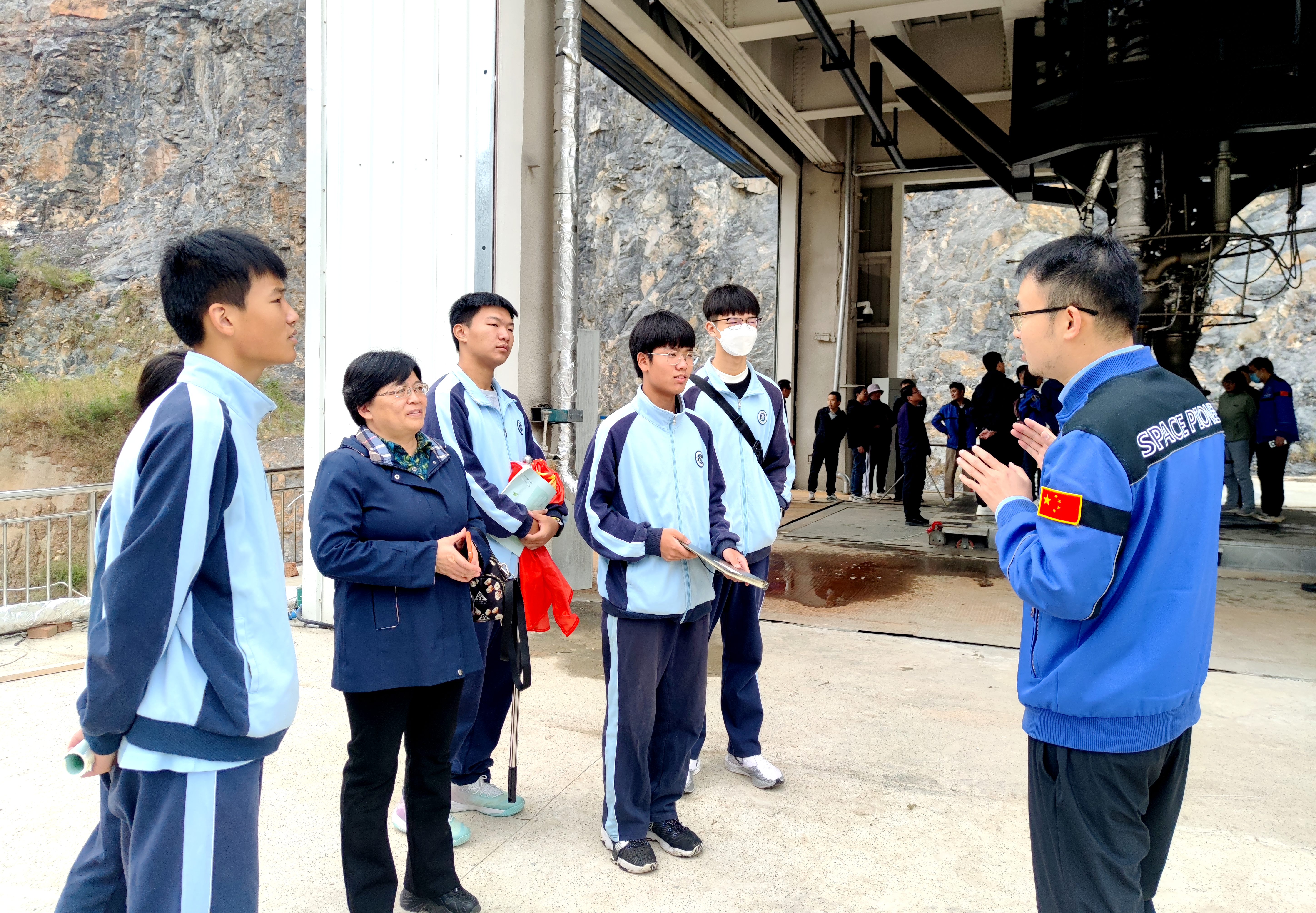 随后,天兵科技负责人带领学生参观了发射现场并为学生介绍了火箭发动机相关原理,鼓励同学们努力学习文化知识,将来积极投身到祖国的航天事业中。
