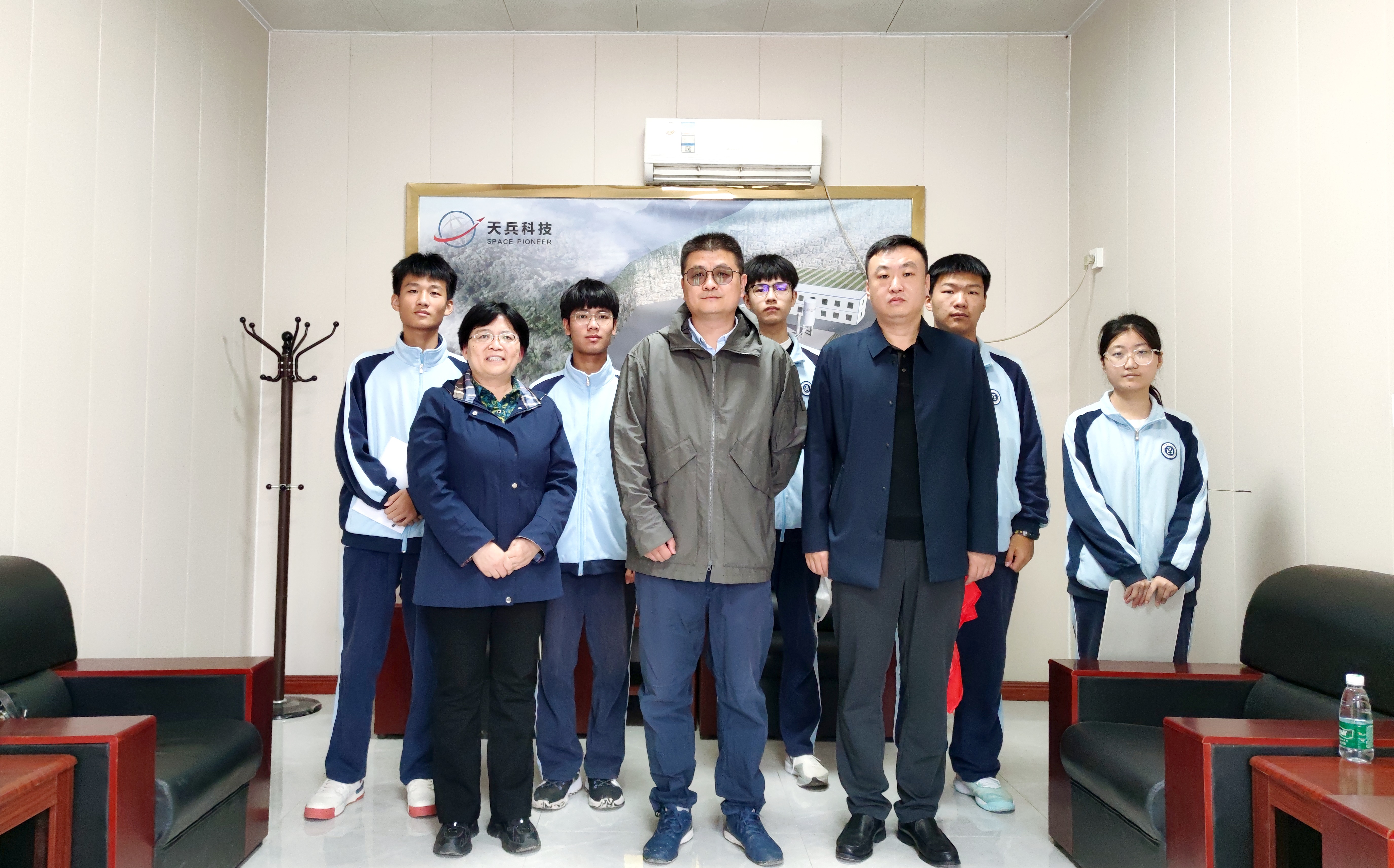 郑州市第五高级中学师生与大峪湾镇党委书记、天兵科技巩义测试中心负责人合影留念
