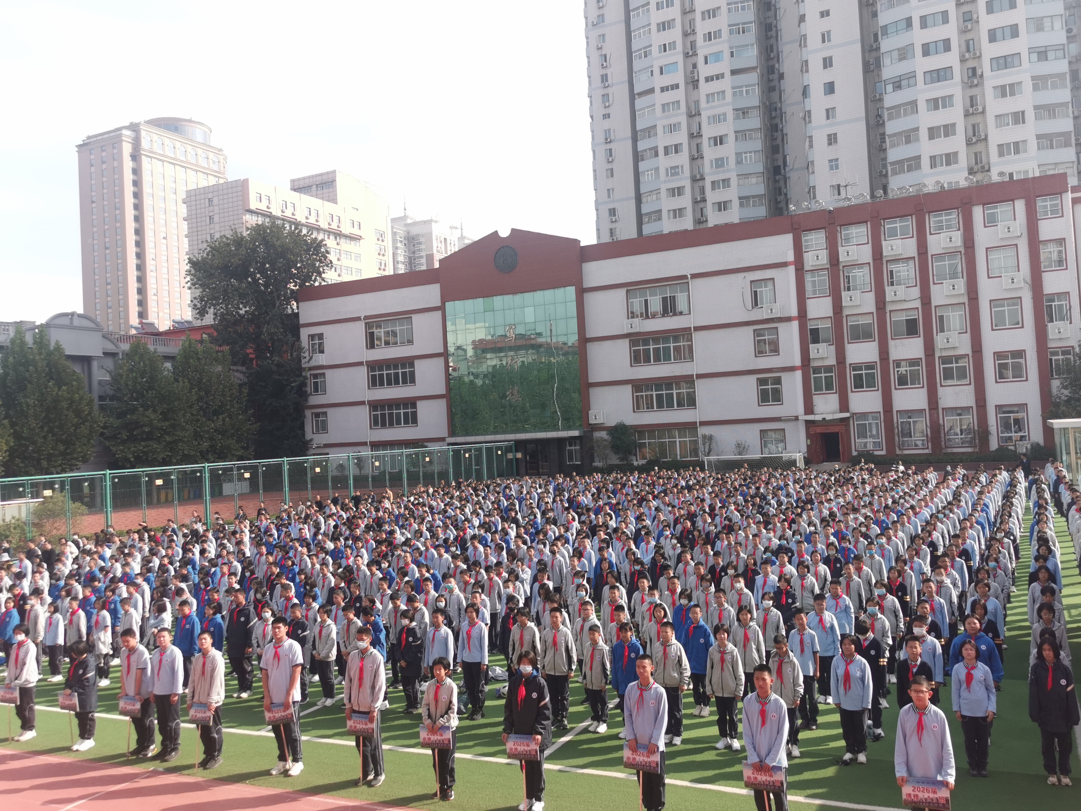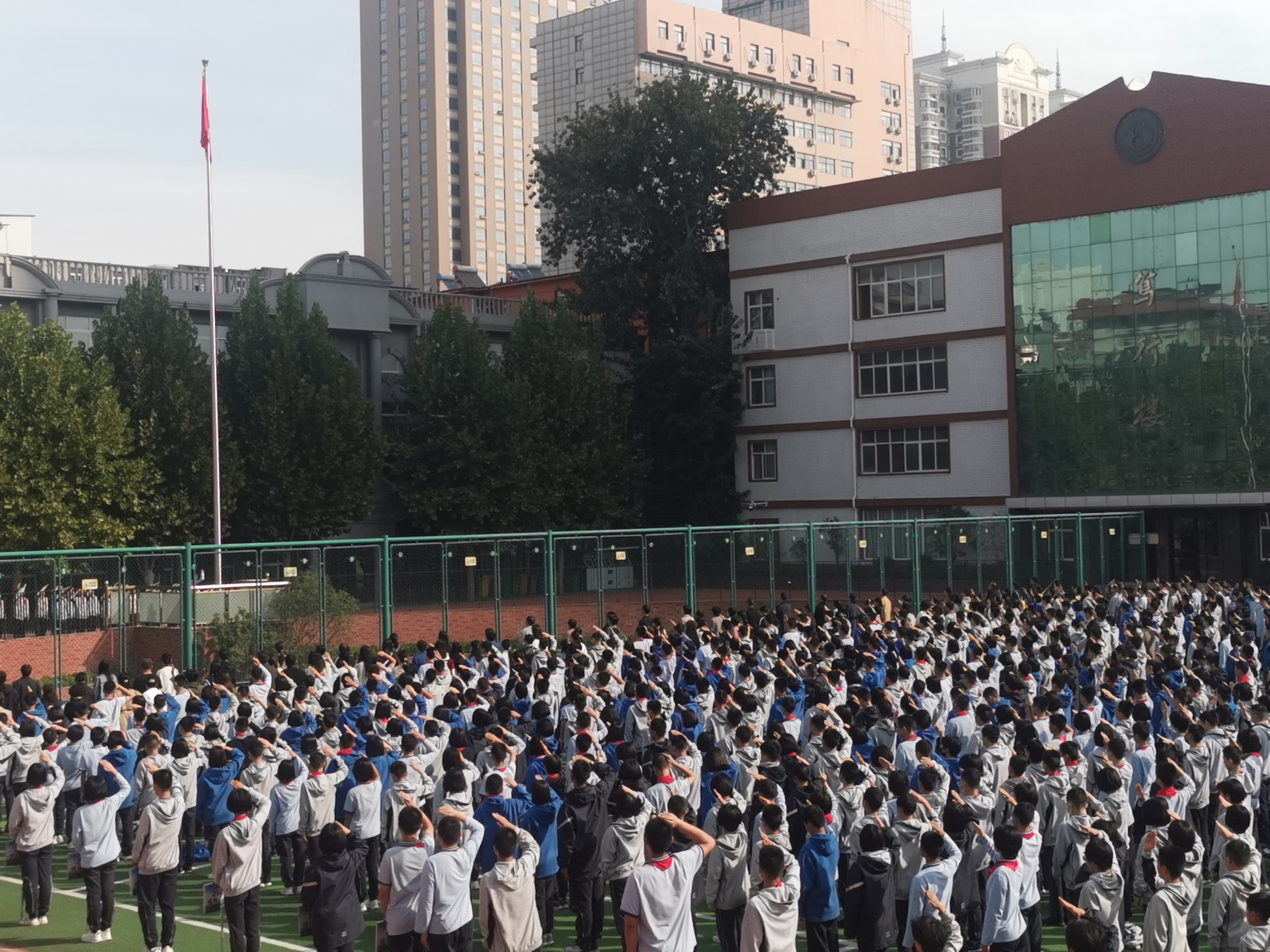 节日当天,秋阳高照,金桂飘香。郑州八中操场上,全校师生着装整齐,精神焕发,举行升旗仪式。在雄壮的国歌声中,五星红旗冉冉升起,全体人员向国旗行注目礼,全场高唱国歌,升旗仪式庄严隆重。