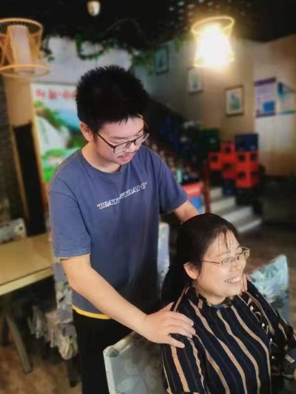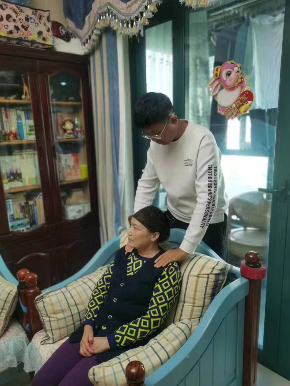 郑州五高学子为长辈按摩捶背践行“孝亲敬老”