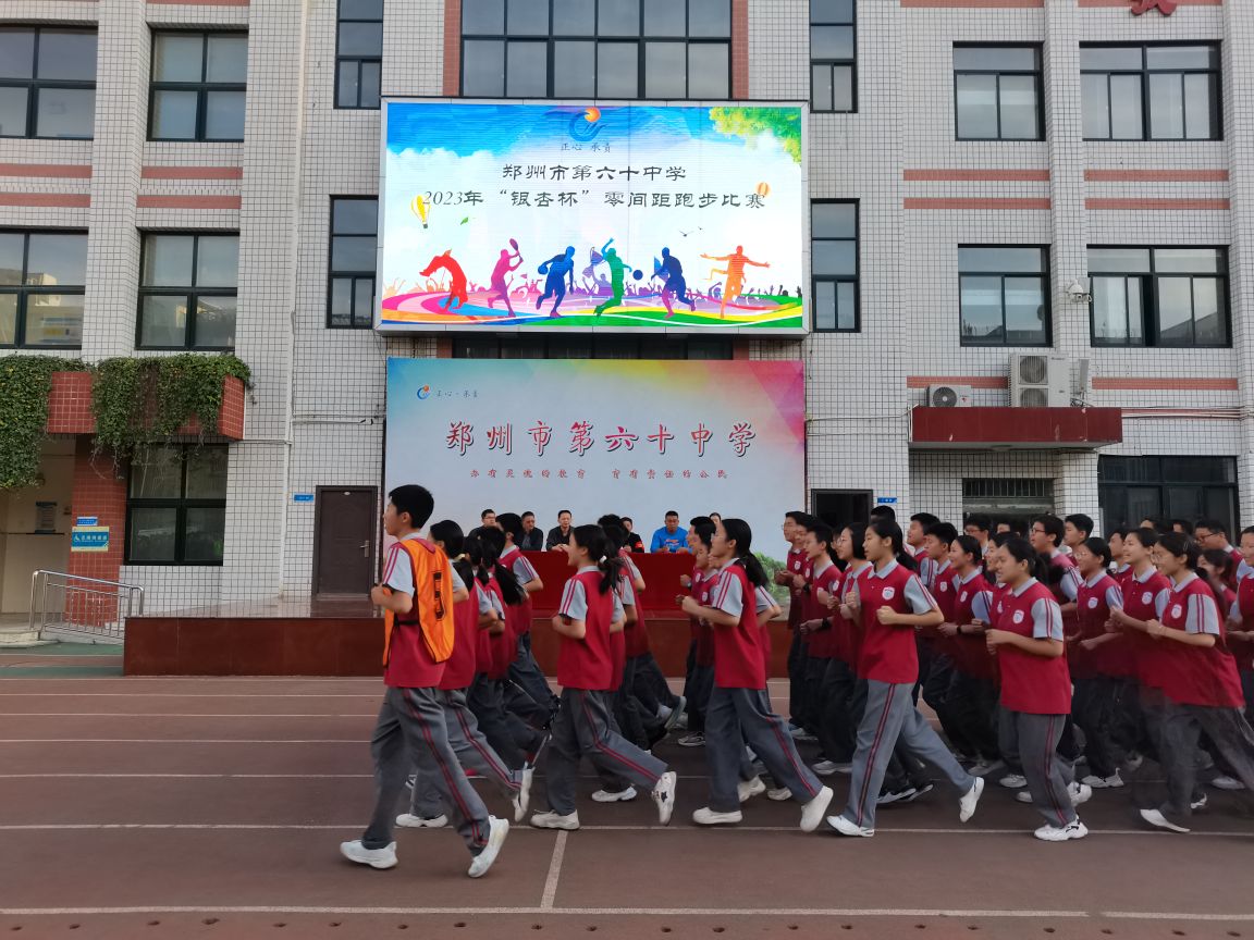 法国著名思想家伏尔泰有这样一句话:“生命在于运动”,健康的身体需要运动来保证。为贯彻“五育并举,立德树人”的教育理念,为了进一步推进素质教育,促进学生身心健康,培养学生良好的体育锻炼习惯和集体主义荣誉感,构建阳光体育校园,10月26日下午,郑州市第六十中学举行“银杏杯”零间距跑操比赛。