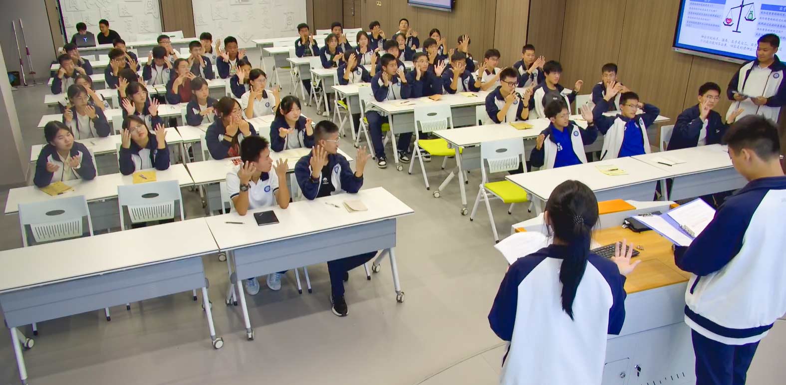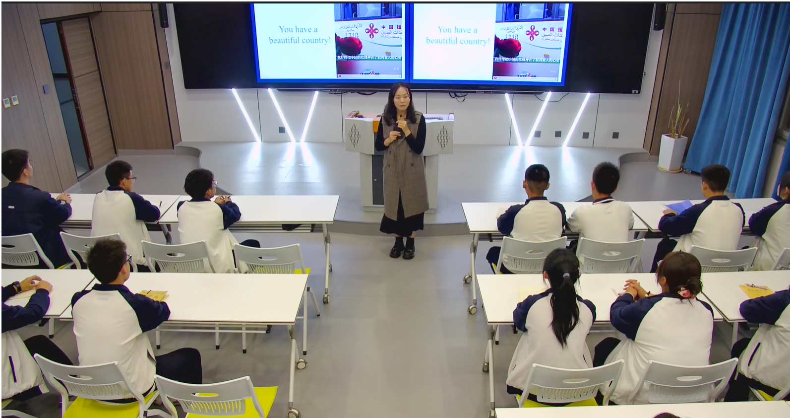 “有一颗感恩的心很重要,所有的人都要有感恩的心。”感恩的对象不只有父母,还有老师、同学、自己和生命。通过一串简单的数字,让同学们意识到同学们相聚在一起是多么幸运,能一起坐在班级学习是多么美好。与之对比下,前来参与2023杭州亚运会的叙利亚总统夫人所说的那句话“You have a beautiful country.”(你有一个美丽的国家),就更发人深省。