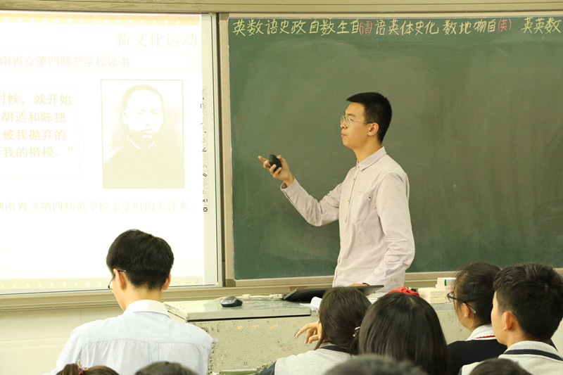 当天下午,进行展示的课程是高级教师周俊的示范课、中级教师赵业的公开课和初级教师祝浩然的邀请课。高中地理、语文和历史组教师教研组集体观课,课后三个学科分别进行了评课。