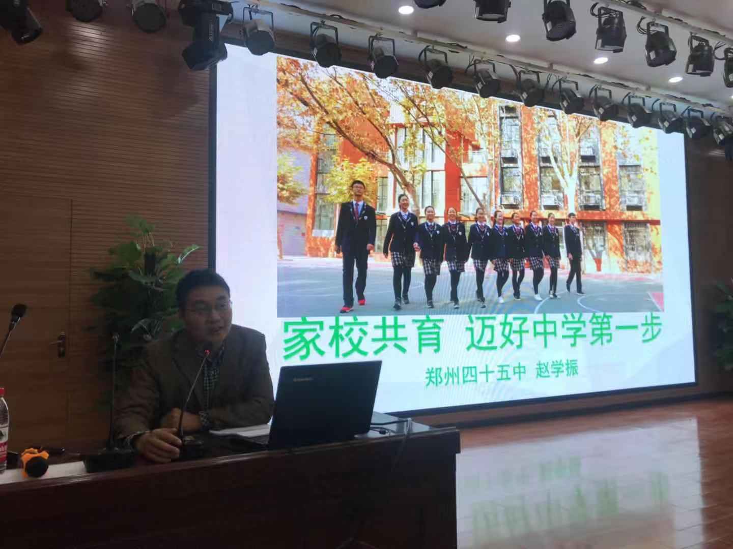 为了引导家长掌握正确的教育理念、教育方法,使学生养成良好的行为习惯,推进家校共育,使七年级学生迈好进入中学的第一步,10月18日上午九点,郑州45中学副校长赵学振为七年级家长做了《家校共育,迈好中学第一步》的专题讲座。讲座由政教处主任闪亮主持。