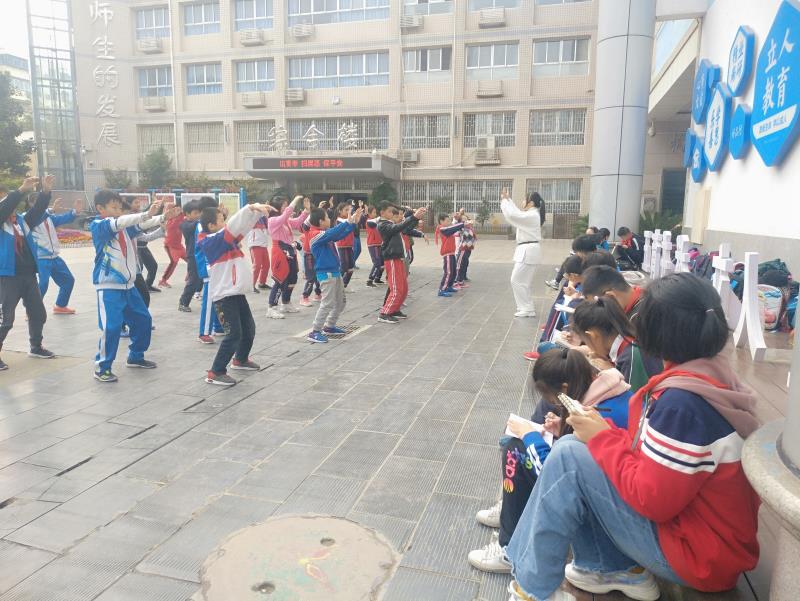 2019年10月16日下午,郑州师范学院附属小学的小记者们在老师的带领下来到灵动太极活动地点聆听、观察并记录这次太极社团的活动。“太极就是一个圆。”李老师用嘹亮的声音为学生们介绍,“双手交于胸前,打开,双手再次交于胸前,右手向外伸,左手往回叉互腰间。”伴着颇有意境的轻音乐,老师一边讲解动作一边做示范,每位学生认真观察着老师的一招一式,情不自禁地模仿了起来,所有师生完全沉浸在了太极的意境之中。据李老师介绍,她的家乡在陈式太极拳的发源地——河南焦作陈家沟,那里的孩子几乎个个都会太极拳,陈式太极已经成为了他们独有的考试项目。“平时学生们的学习任务是非常繁重的,学校开设这门课程就是为了让学生能够真正地静下心来,在繁忙的学习中达到休身养性的效果。”李老师说。“打太极拳使我十分放松,能够真正起到休养身心的作用。”跟随李老师练习的学生说。
