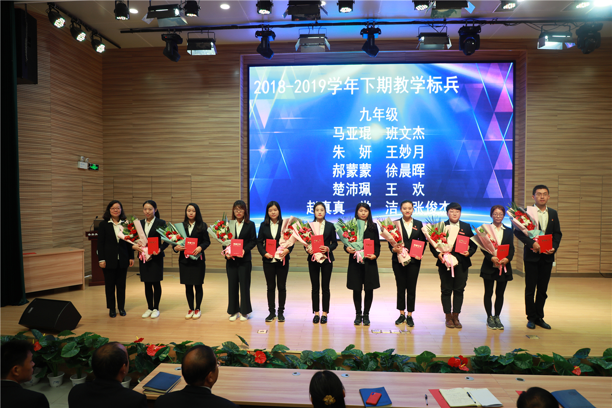 会上宣读了教学标兵、骨干教师、名班主任、优秀教研组等表彰决定,并对相关教师进行表彰奖励。受表彰教师手捧奖状,接受学生代表鲜花祝福,脸上的微笑彰显着幸福和喜悦。教师朱妍作为获奖教师代表发言,对所有帮助过、指点过她的领导和老师表示感谢,并表示未来一定继续努力,不辜负家长、领导、学校的期望。