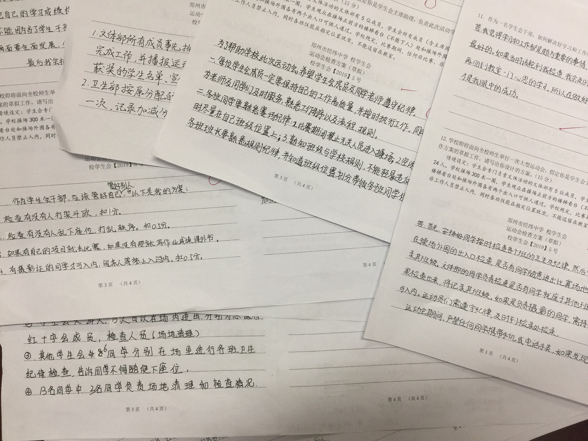 2022届86名学生齐聚实验室,开始了头脑风暴式的测试,他们面对的是一道道考查学生会干部综合素质的考验,面对的是一个个活生生的工作事例……“假如你在执行检查过程中和你同组的同学打分意见不同,且他坚持自己的意见,此时你会怎么做?”面对这样的题目,他们各抒己见,如何尊重理解,求同存异?“恰逢学校运动会,假如你是学生会主席助理,请策划一份学生会工作方案。”面对这种情景创设,他们大胆设想,方案中设计纪律、卫生、安全救护、督查等各个方面,可谓是思维缜密、创新务实。他们自信地应答,书写自己的想法,书写自己的梦想。