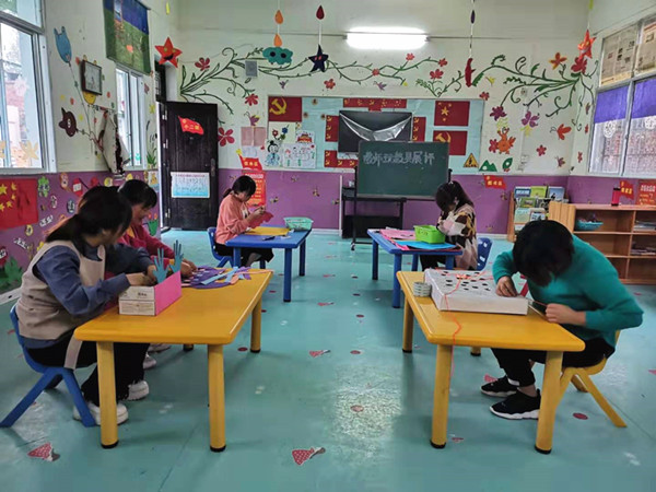 本次活动以班级为单位,首先由负责人宣读评比方案及细则,其次,老师们根据孩子的年龄特点和教学需要,遵循“自制、创新、环保、实用”的原则,利用硬纸箱、卡纸、鞋盒、泡沫板等废旧材料进行自制玩教具。教师利用生活中的废旧材料,变废为宝,既可以做上课的教具,又可以作为玩具用来进行区域活动。最后进行评比,玩教具制作者简单介绍作品名、制作材料并示范玩法,各位教师依据方案中制定的评分细则互评打分。