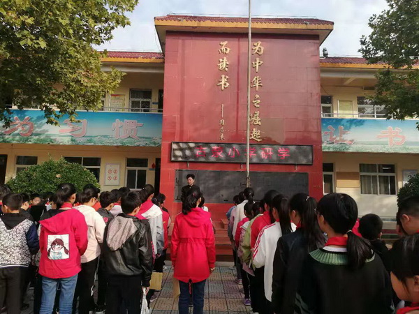 出发前,古荥小学教学副校长李军召开全体动员会,鼓励同学们研学过程中一定要多观察,多思考,让研学之旅有意义。研学小组从学校出发,一路向北,远远看见一座古建筑紧邻古荥镇政府,它坐北朝南。这处建筑,叫荥泽古建,老百姓又叫它城隍庙。