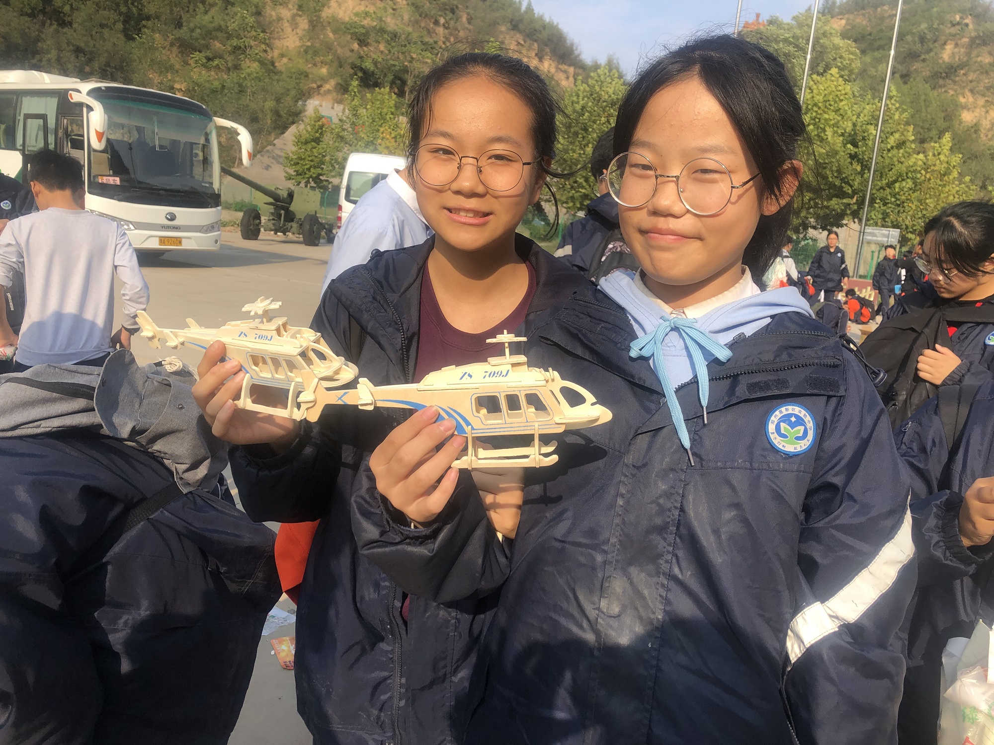 在国防教育基地带队老师组织学生还进行了拼飞机活动。同学们拼尽全力、绞尽脑汁,飞快地舞动着双手,把面前看似杂乱无章的木板拼凑成飞向蓝天的梦想。