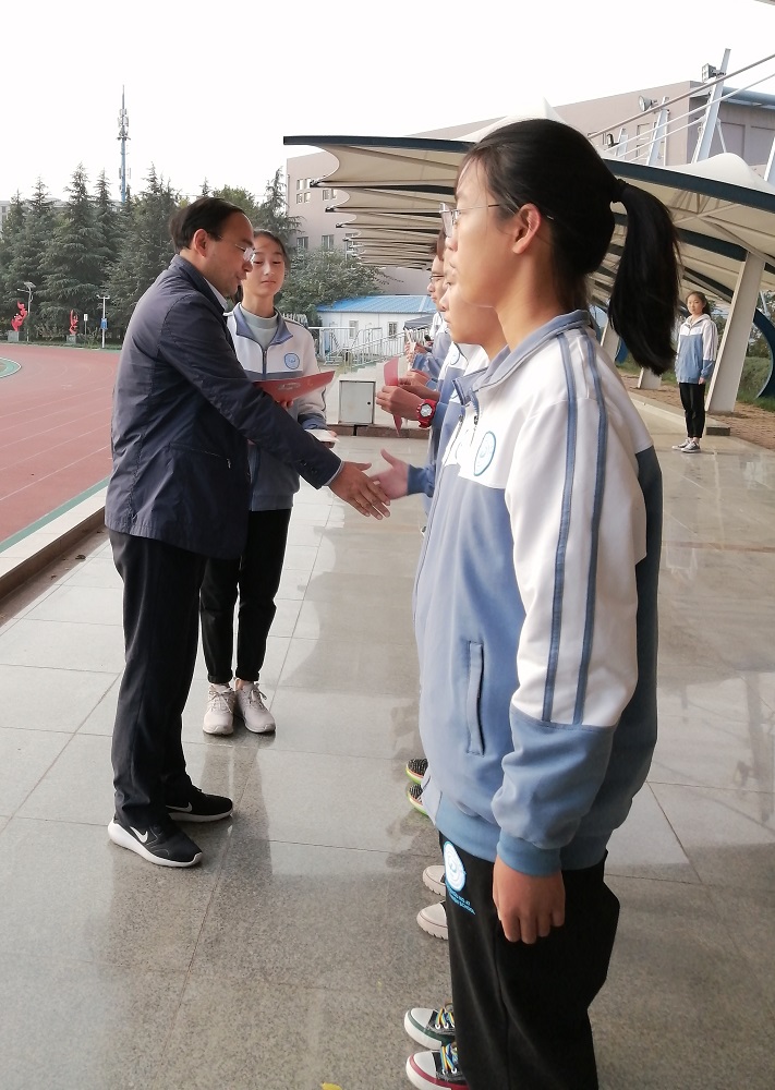 秉承学校自能发展的办学理念,高一年级成立了年级学生会,实现了年级管理和学生自我管理相结合,力求把年级管理落到细处和实处。栗校长为高一年级学生会成员颁发了聘书并提出了期望。新任高一年级学生会成员在高一年级学生会主席王珂茹的带领下宣誓,“以服务为己任,以身作则、公正无私,严于律已、尊师守纪,团结合作、文明示范,勤奋工作、积极进取,为建设美好‘四园'而努力。”