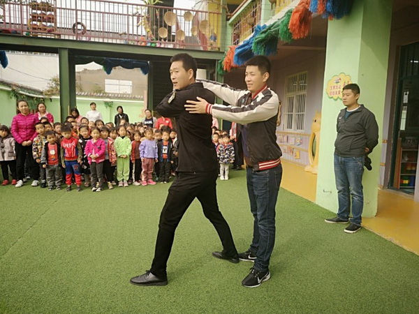 演练结束后,全员集合,河南省人人安康社会工作服务中心的孟治宇教官对此次演练进行了小结,指出教师应对过程中的不足之处,提出防范要求,并教育孩子们如何与陌生人相处,走丢了怎么办,坏人引诱怎么办,并设定生活中多见的人身侵犯场景,现场示范制敌方法。