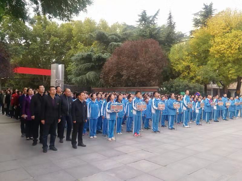 10月28日早晨,郑州市回民中学在综合楼前举行“坚定行为规范意识,你我共建文明家园”主题升旗仪式,七年级全体师生和学校领导参加了本次升旗仪式。