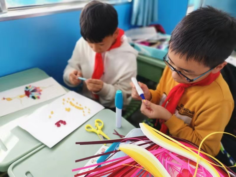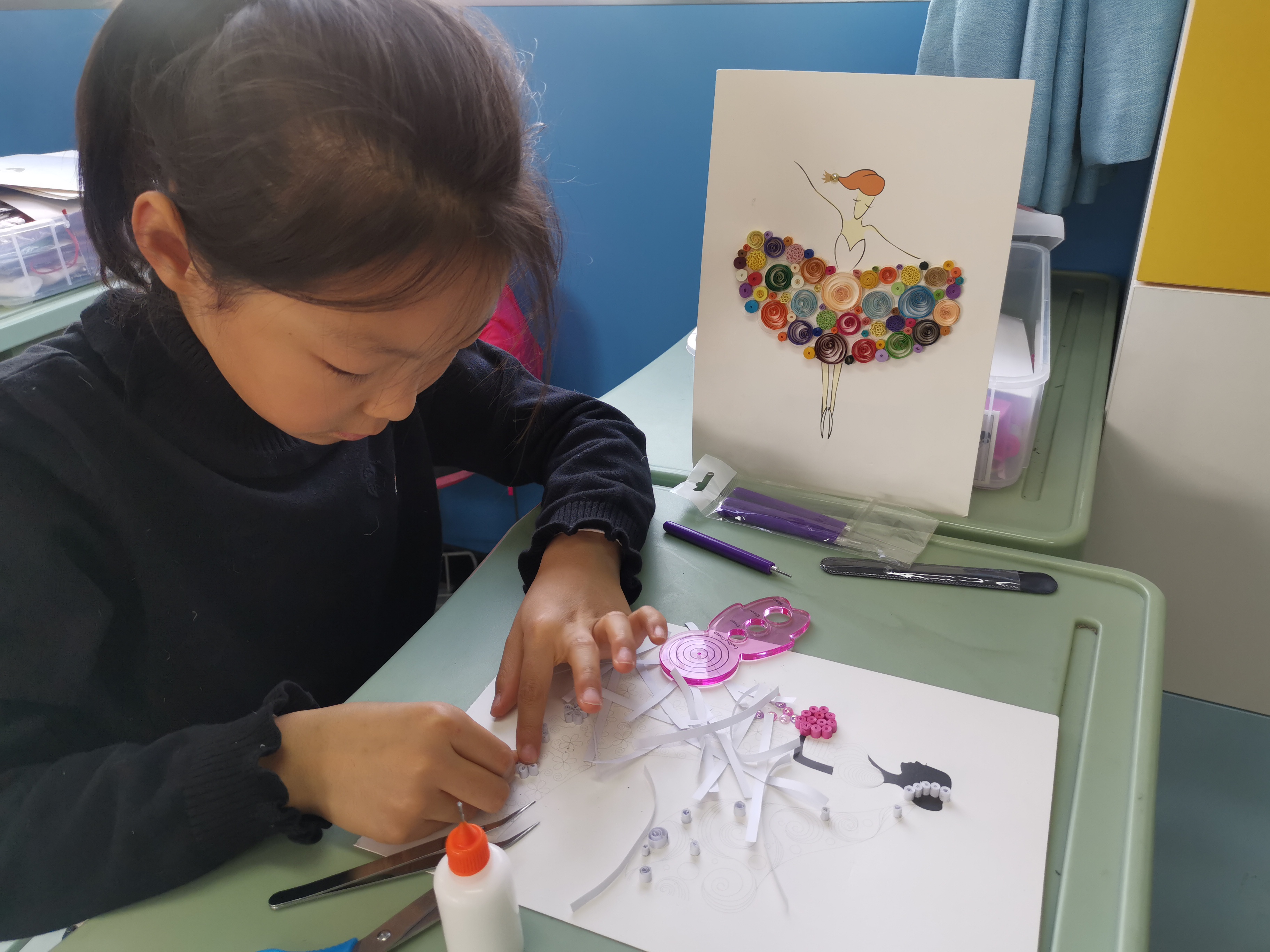 衍纸,是纸艺的一种形式。通过卷、捏、拼贴组合成一幅美轮美奂的画或其他艺术作品。郑州师范附属小学结合衍纸的特点,开设了“纸上芭蕾”校本课程,让同学们静下心来感受美好生活。