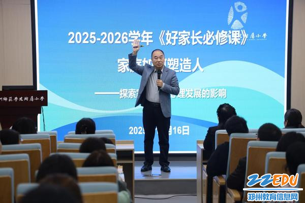 为帮助家长掌握科学育儿理念,提升家庭教育水平,郑州师范学院附属小学2025-2026学年“家长学校”于10月16日正式启动。首期“好家长必修课”特邀国家二级心理咨询师王全利,以《家庭如何塑造人》为主题,为家长们带来了一场深刻而实用的家庭教育指导。