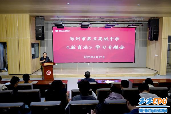 郑州市第五高级中学党委书记陈峻领学《中华人民共和国教育法》并部署学校学法活动