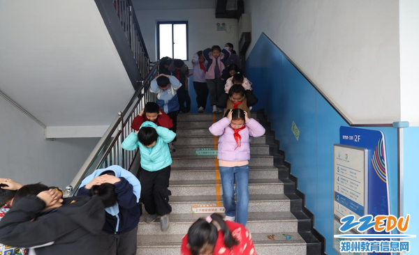 郑州师范学院附属小学开展防踩踏应急疏散演练