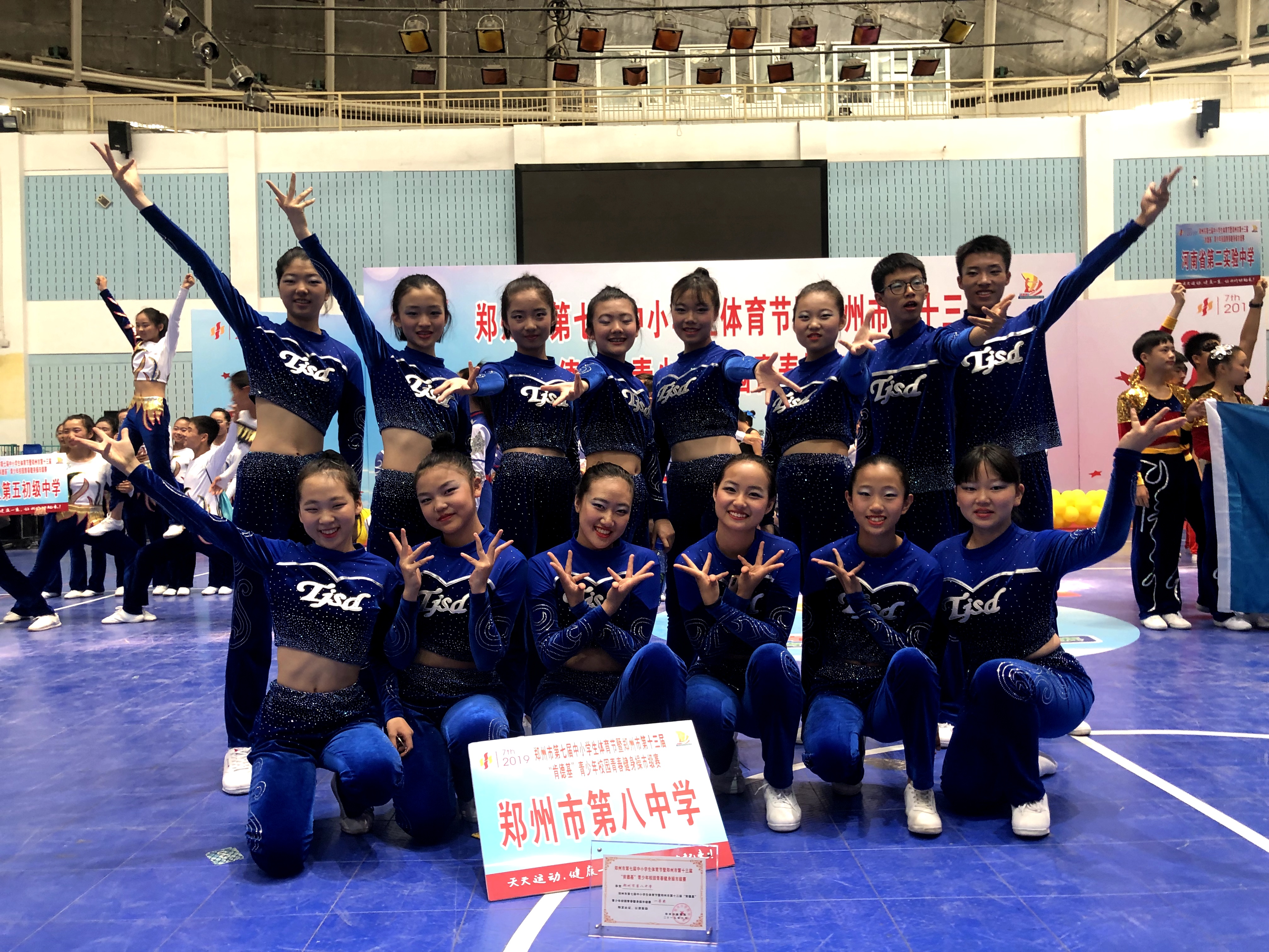 郑州八中啦啦操项目一直深受学生的喜爱,教练员毛慧敏老师近年来不断耕耘,将啦啦操项目开枝散叶,依托社团课程、课外活动,将其融于社团教学,促使教学系统化、知识专业化。通过筛选,择优录取学生进入学校校队,进行分层培养、精英教学。通过系统化的训练体系、动感十足的节奏、整齐划一的动作提高了学生的乐感审美、强健了他们的体能体魄。郑州八中校园啦啦操运动队近年来多次荣获“郑州市中小学生体育节”一等奖,为上级学校输送了一批优秀的啦啦操运动员。