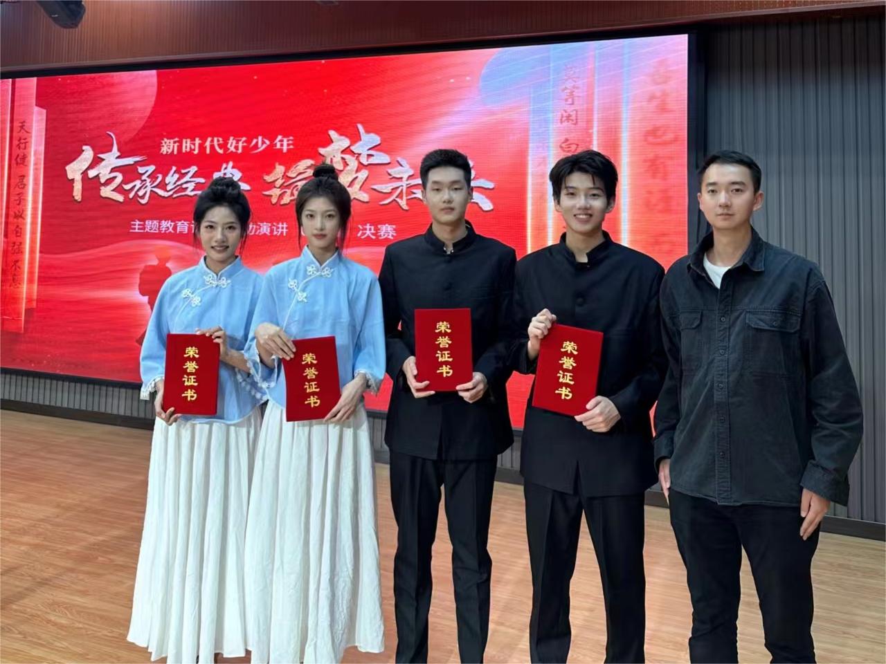传承经典,筑梦未来。10月31日,在郑州市第九十九中学综合楼二楼报告厅,2023年新时代好少年主题教育读书活动“传承经典·筑梦未来”演讲(朗诵)决赛落下帷幕。郑州市第一〇七高级中学的参赛选手张延、杜馨悦、刘雨阳、谢元恒诵读的作品《不朽》荣获市级一等奖,《不朽》指导教师陈立京、游鹏荣获优秀指导奖。