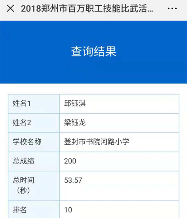 此次比赛不仅考验学生们的知识广度,动手能力,团队配合,还需要参赛队员们在活动中发挥想象力,并用所学知识和技术将创意实现出来,评委根据作品完成情况和现场表现、展示、答辩情况,进行综合评定打分。虽然是第一次参加比赛,但是在辅导员老师的人精心辅导下,邱钰淇、梁钰龙两位同学不仅战胜了紧张情绪,还掌握到了实战技术,经过激烈角逐,登封市书院河路小学的邱钰淇、梁钰龙同学在众多选手中获得了前十名的好成绩,
