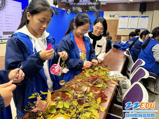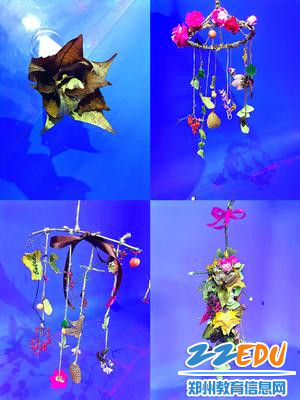 每一片落叶,都承载着季节的故事,每一次弯腰拾起,都是与自然的一次深情对话。带着思考和灵感,同学们分小组在校园里“低头捡秋”,然后回活动室“动手留秋”。同学们将捡拾起的落叶、秋花、秋草、秋果子等秋天碎片制作成落叶画、落叶花束、落叶风铃,不仅仅是在追逐一场视觉盛宴,更是在体验一场关于人、自然与心理的美妙邂逅。