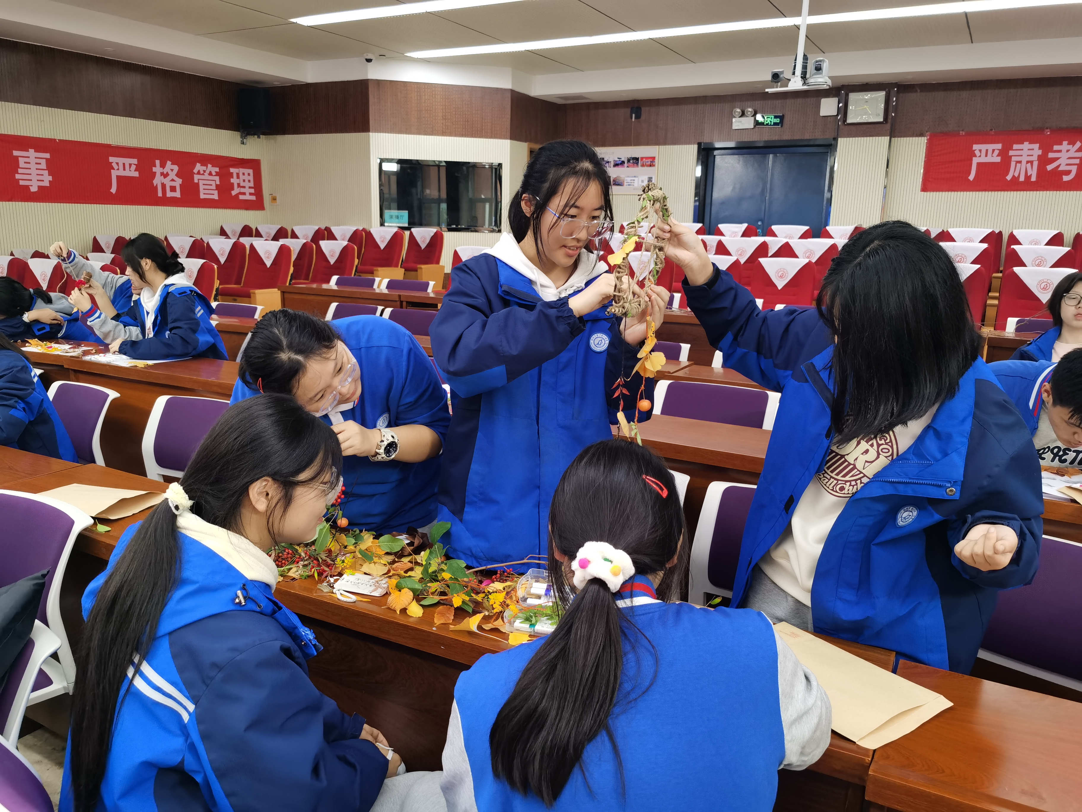 语文教研组设计了“沉醉秋光 品诗词香”——诗词书签制作活动和“今日云景好 与君共秋光”——“我读·我在”活动,树叶诗词书签与朗朗书声使校园的秋天变得更加生动有趣;地理教研组结合地理学科特点的同时与语文学科有效融合,组织学生分“捡秋实、展秋实、我为家乡做代言”三个阶段参与到“捡秋”活动中,让学生从中学到地理知识;生物教研组开展了“知花识草赏秋果”“巧手匠心,镂花镌叶”等活动,对校园植物进行实地鉴赏、制作校园植物标识牌并挂牌并制作叶脉书签,进行展览收藏;心理社团和舞蹈社团联合举办以“感悟秋天之美”为主题的心理沙龙,带领同学生们一起走出教室,来到校园,捡拾落花落叶,精心制作心灵手作,美术教研组组织摄影比赛,引导学生在镜头中捕捉秋之美,秋之意,以此提升学生审美能力。