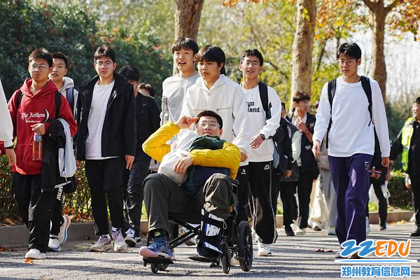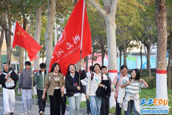 在郑州市植物园稍作简单休整后,远足队伍便开始有序返程。返程的路,无疑是对大家意志力的一场更大考验。出发时,大家满怀激情与期待,步伐自然轻快有力;返程时,精力逐渐消减,步伐也变得沉重。但浓厚的师生情、深深的同学情,如同有力的纽带,将大家紧紧相连。同学们相互搀扶,互相鼓励,最终没有一人掉队,没有一人落伍。