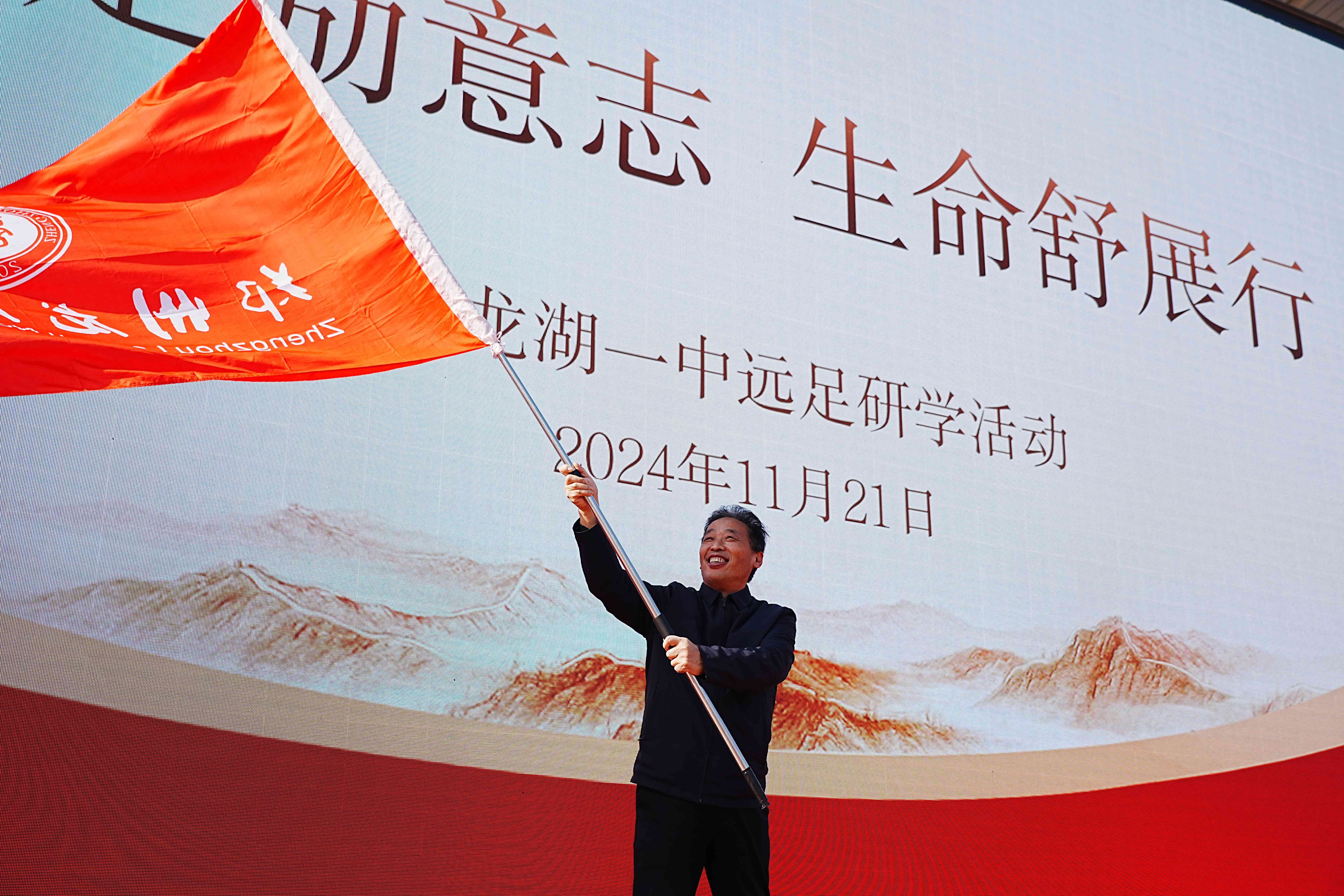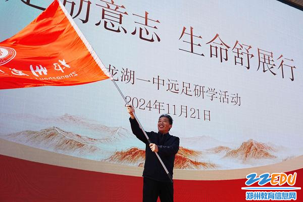 随后,郑州龙湖一中党委书记吴建财庄重地向学生代表传递校旗,并高声宣布:“远足励意志,生命舒展行”远足活动正式出发!