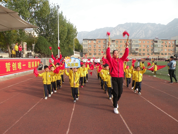 伴随着慷慨激昂的运动员进行曲,运动员们在国旗护卫队和园徽护卫队的带领下依次走过主席台,他们个个精神抖擞,意气风发,威仪庄重,英姿飒爽,响亮的口号展现了健康向上、团结进取的精神面貌。是波浪就应该把雄涛的旋律迸发,是星星就应该把蓝天的音符拨响,从他们炯炯的目光里,我们看到了未来看到了希望。与往年不同的是,今年增加了家长方队。看!家长朋友昂首阔步,心中装满的是对孩子们的殷切期望;他们精神抖擞,心中萌动的是孩子们的成长,“积极、向前、飞跃”是为人父母者彰显的气质。昨天,他们以高尚的人格耕耘在各行战线上;今天,他们将会用矫健的身姿舞出最美的风采。