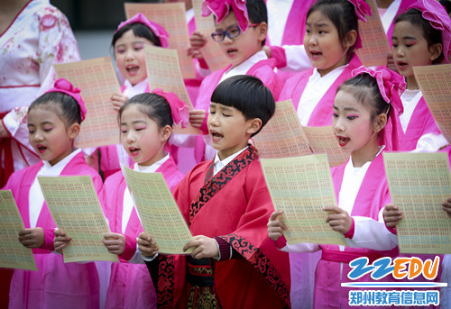 2019年11月4日上午,金水区纬一路小学举行千人共读《千字文》过程性成果展示。全校1800多名师生、各班家长代表及媒体朋友参加了本次活动。