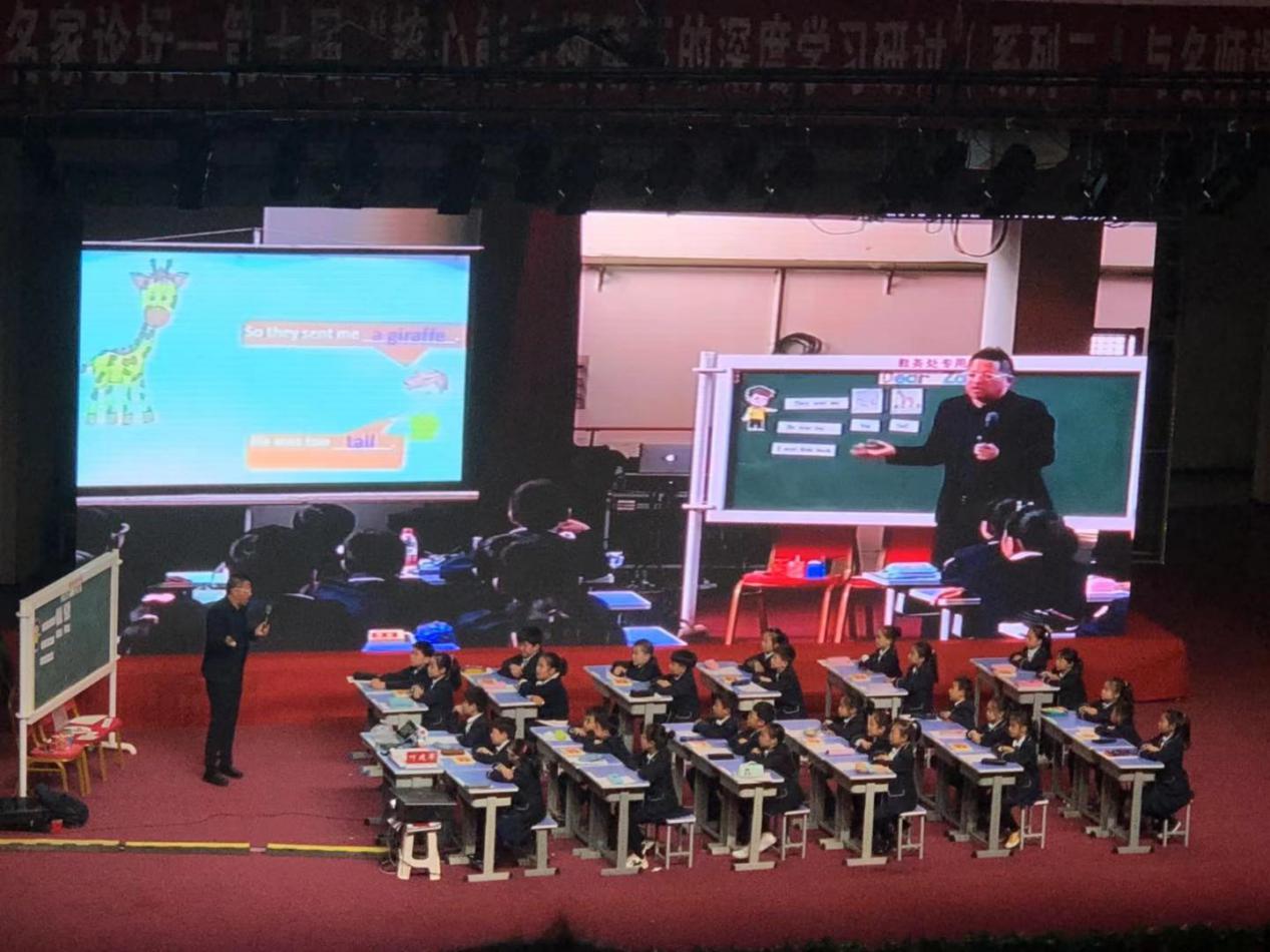 大会伊始,北京师范大学外国语言文学会学院教授程晓堂以“通过创新英语课堂教学发展学生核心素养”为题,为老师们在课堂教学创新的问题上出谋划策。程晓堂举例如何用有趣活泼的课堂活动将内容知识融入语言学习和教学中,帮助学生们学会观察、建构概念、发展思维能力,同时还能提高英语表达能力。教育部电化教学资源库项目特聘英语教学资源审定专家叶建军展示了一节精彩的绘本课—《Dear zoo》,以简单的夸张的动作言语,站在孩子的立场思考问题,感情升华精准到位。叶老师的课堂内容丰富,分析透彻,问题设计深入,逐步引导挖掘文本,开拓学生的思维。