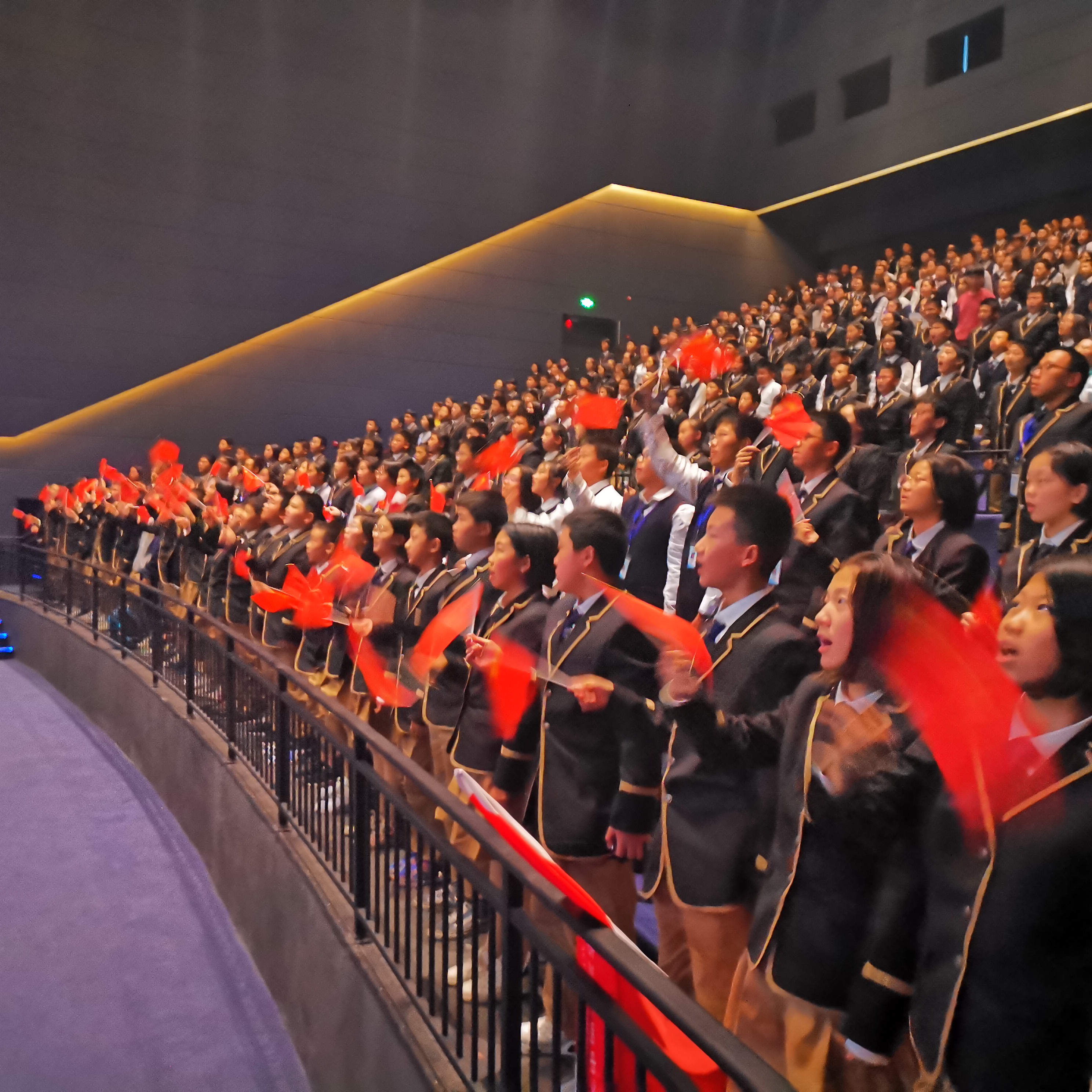 在观影过程中,同学们认真观看、用心体会,热泪直流,掌声不断。1949年10月1日,伟大领袖毛主席在天安门城楼向全世界宣布中华人民共和国成立,世界瞩目。1964年10月16日,中国第一颗原子弹爆炸成功,“中国一夜之间改变了自己的地位”;1984年8月8日,中国女排奥运会夺冠首获世界大赛三连冠,永不言败的女排精神,一代传奇;1997年7月1日,香港回归,守护祖国尊严,捍卫祖国主权;2008年8月8日,北京奥运会开幕式,向世界展示中国古老的文明和辉煌的现代化进程;2016年11月18日,神舟十一号飞船返回舱成功着陆,大壮国威。学生们重温了新中国70年成长的艰辛历程,体会到美好生活的来之不易,真正理解了“无数革命先烈用鲜血和生命,捍卫着脚下这片土地的安宁”,每个小人物看似毫不起眼的行为,都与祖国的繁荣昌盛有着千丝万缕的关系,心灵受到了极大的震撼,民族自豪感油然而生。