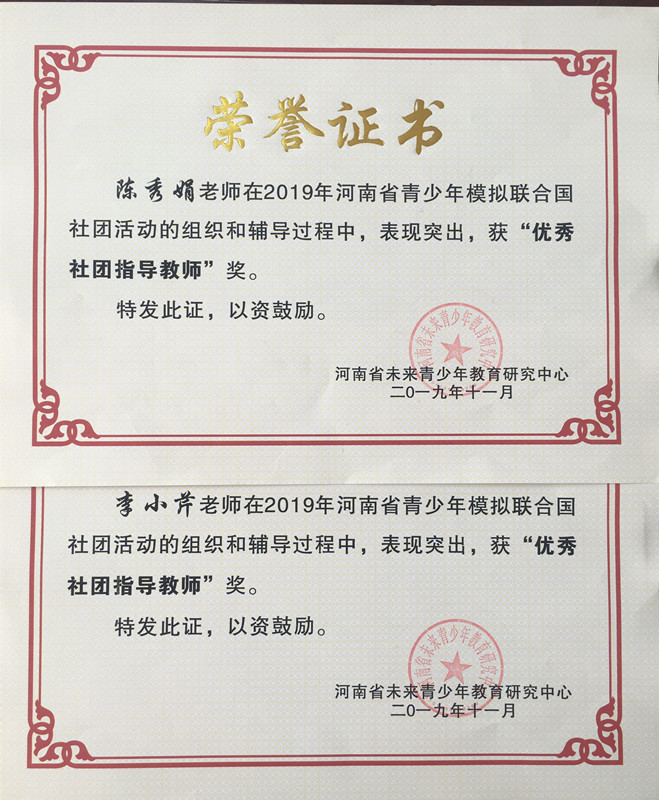 11月4日早上,在郑州二中初中部升旗仪式上,学校23名模拟联合国社团成员受到了表彰,收到了荣誉证书。在11月2日-3日,郑州二中初、高中共计42名优秀学子组成的郑州二中模拟联合国社团,参加了在河南省实验中学举办的第十届河南省青少年模拟联合国峰会中学组比赛,并因出色发挥取得了喜人的成绩。