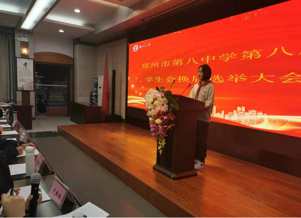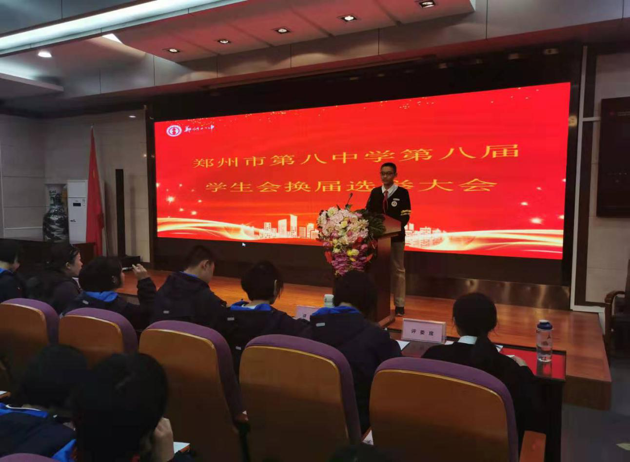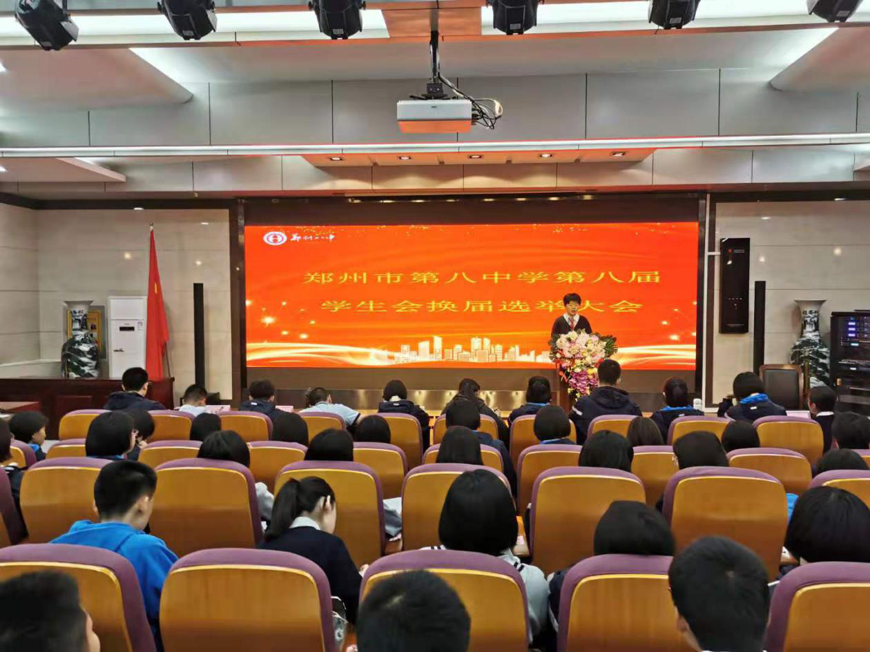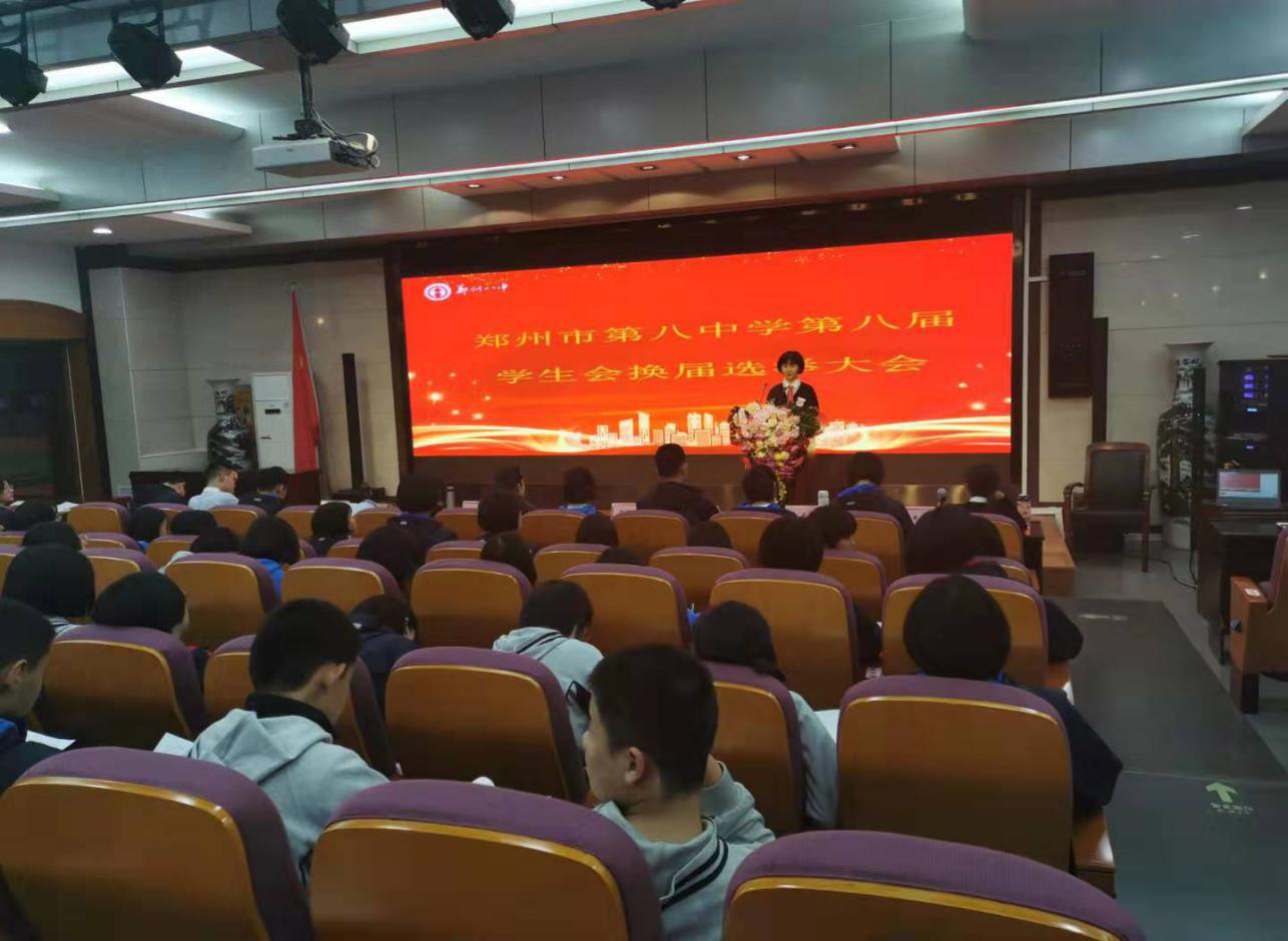 为保证学校学生会工作的连续性,更好地传承学生会的优秀精神品质,更好地服务于广大师生,充分发挥校学生会的职能作用,2019年11月3日下午,郑州八中第八届学生会换届选举大会在多功能报告厅如期举行。