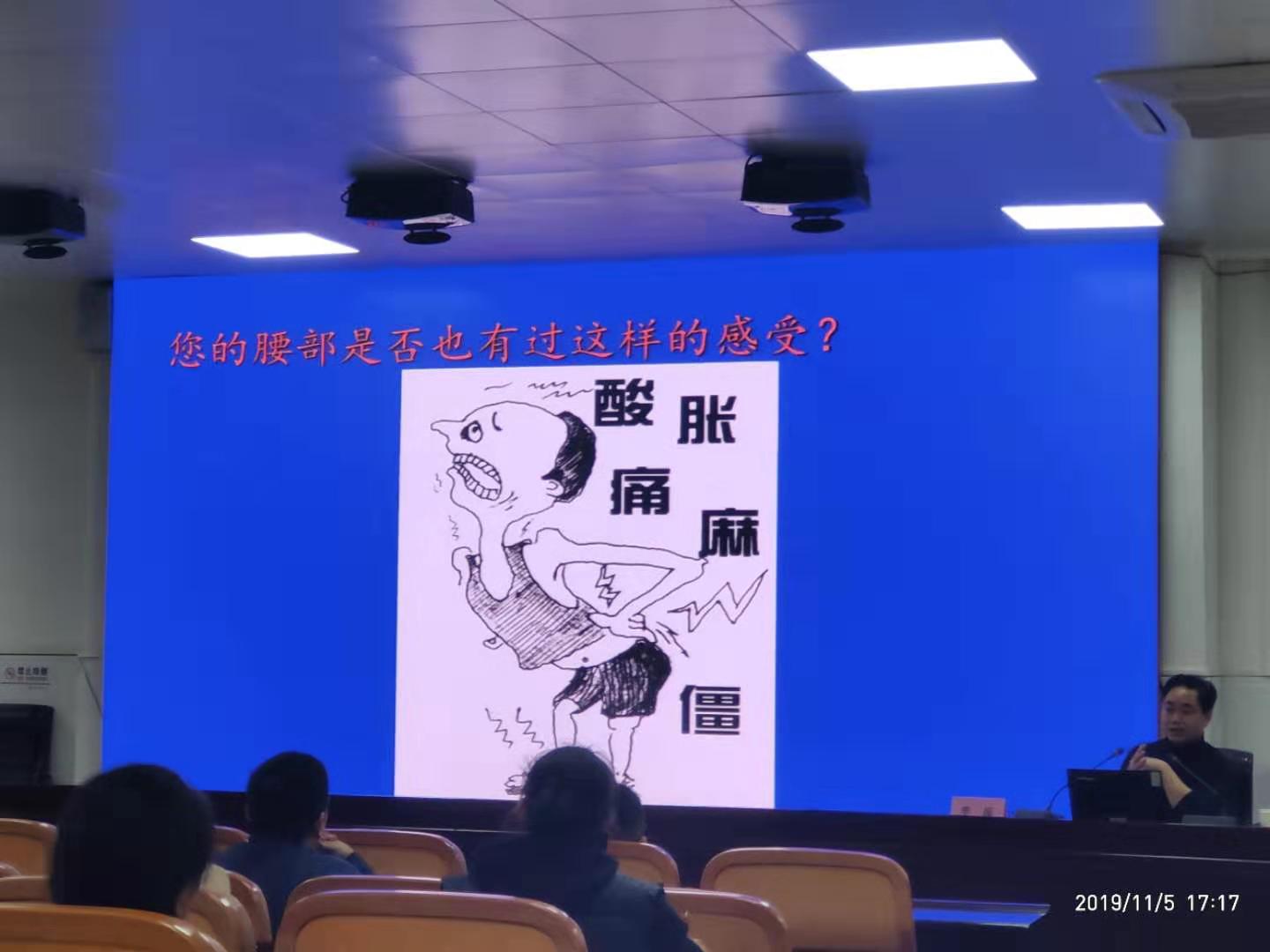 本次讲座活动由郑州二中工会陈胜主席主持。讲座的主要内容为腰椎间盘突出症相关医学常识。李振运用幽默风趣的语言、直观形象的动作,并辅以课件让教职工们掌握养护腰椎间盘的小常识,认识到预防远大于治疗的医学理念。李振娓娓道来的讲解让教职工们意识到不良的坐姿、生活习惯对人体的危害,意识到健康生活方式的重要性,整堂讲座内容新颖、知识面广、形式生动,非常实用易懂。