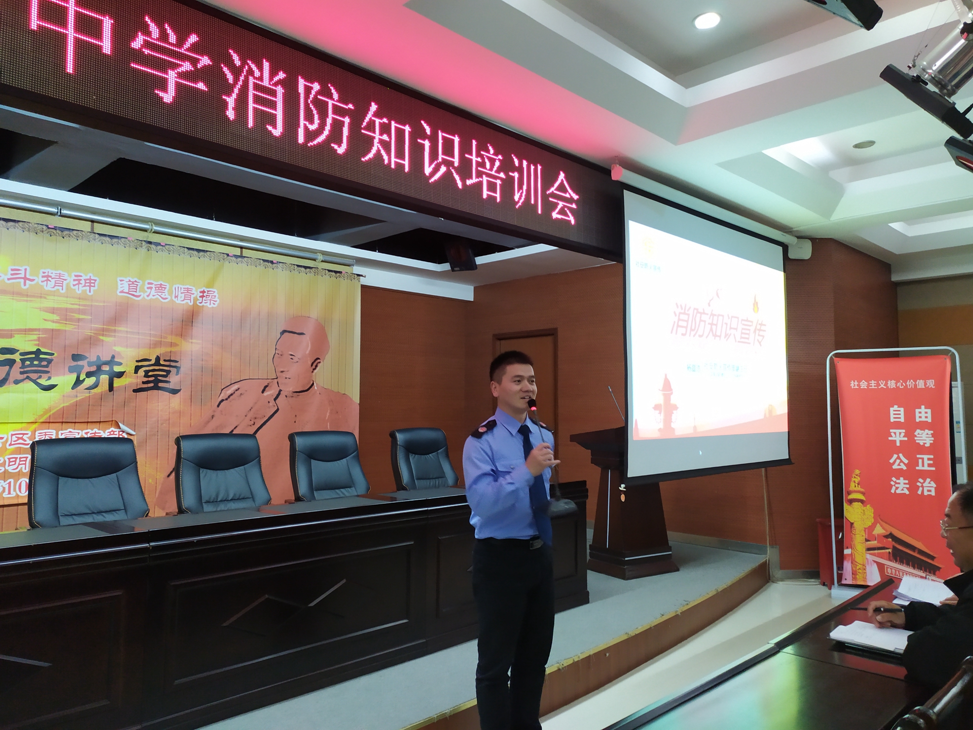 11月9日是全国消防安全日,为提高广大师生的消防安全意识和火灾逃生能力,进一步掌握消防安全知识以及消防灭火器材的使用方法,11月7日,郑州市第107中学邀请郑州市社安防火中心的杨磊浩教官担任主讲人,举办了一场消防安全知识培训会。