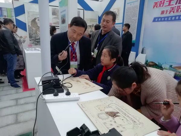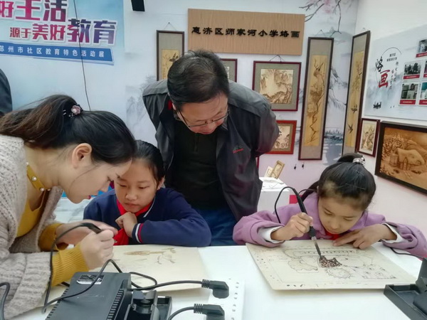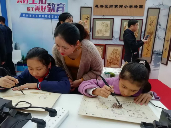 为传承弘扬传统文化艺术,丰富社区文化生活,提高广大居民的艺术修养,11月8日,中国全民终身学习活动周全国总开幕式在郑州54中举行。活动当天,惠济区师家河小学烙画特色代表惠济区在全民终身学习活动周全国总开幕式现场展示。