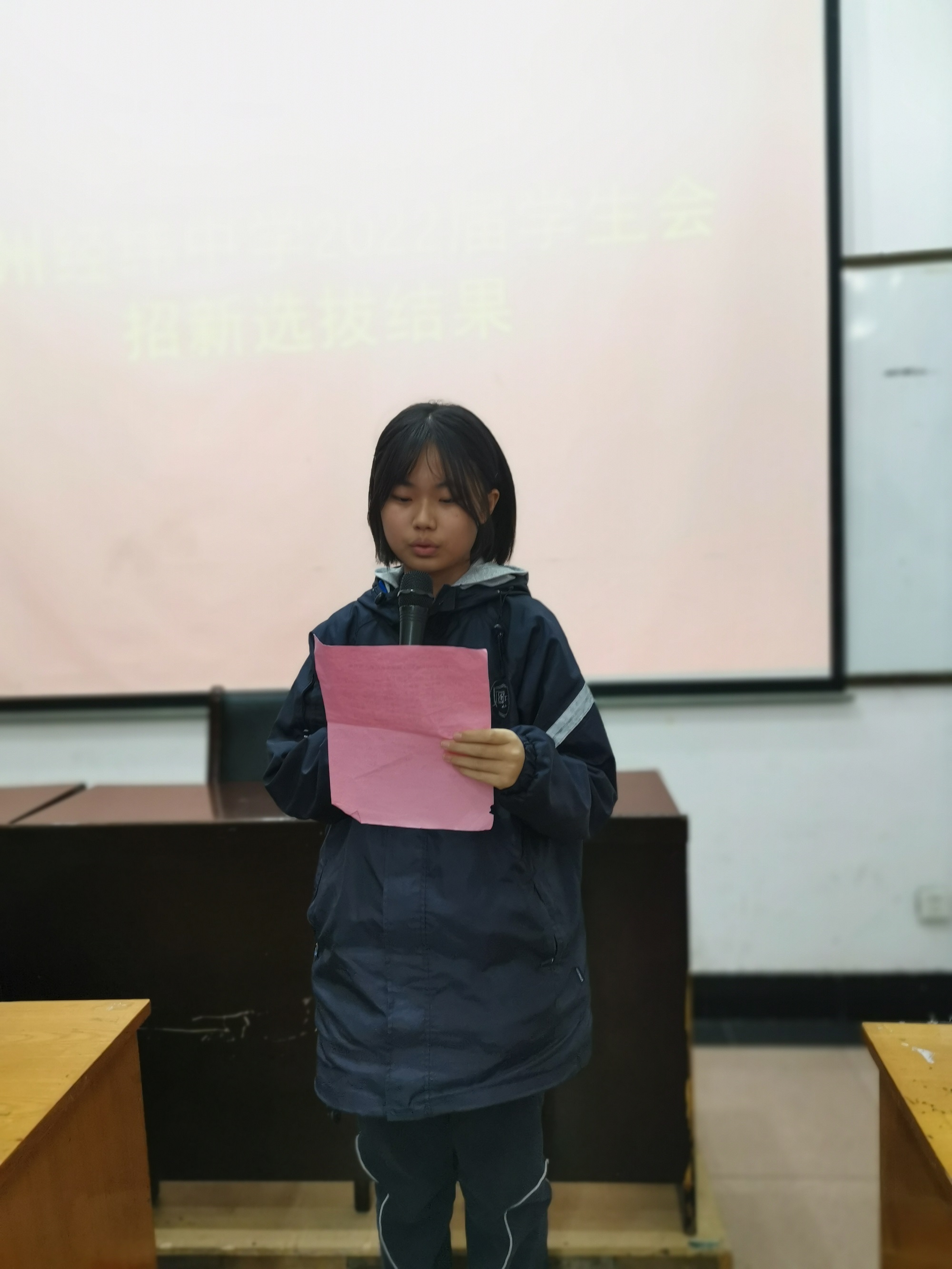 在庄严的国歌声中,郑州经纬中学第八届学生会干部入职典礼正式开始。校学生会主席王誉霈宣布郑州经纬中学第八届学生会招新选拔结果并带领全体学生会干部宣誓,立志为把自己锻炼成为思想合格、纪律严明、立场坚定、具有较强管理能力的当代中学生而奋斗。新任学生会干部杨丰赫代表2022届全体学生会干部表达了将对工作全力以赴、精益求精的决心,真正起到模范带头作用,希望通过努力在学生会收获更好的自己。学生会副主席窦好代表学生会向新入选的学生会干部提出希望。