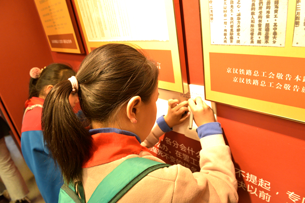 11月14日,二七纪念塔的工作人员又走进农科路小学北校区,把“永不忘却的记忆”、“五四新文化运动”、“中国力量”的文化展板送来展览,全校同学通过参观宣传展板感受到了榜样的力量、“二七精神”和“五四精神”。