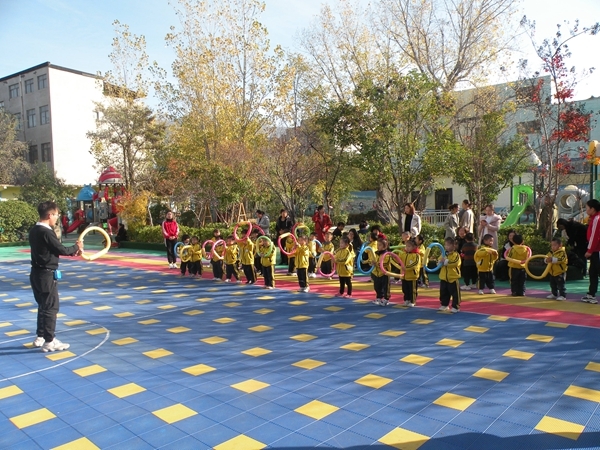 幼儿园的户外活动丰富多彩,跳绳、排球、跳圈、抛沙包等,游戏:切西瓜、小鱼游、老狼老狼几点了、钻山洞、过小桥等。校园里一片欢声笑语,孩子们相互追逐着、玩耍着,欢快的四处飞舞,每一双眼睛里闪烁着无限的欢乐,这是属于他们自己的童年。