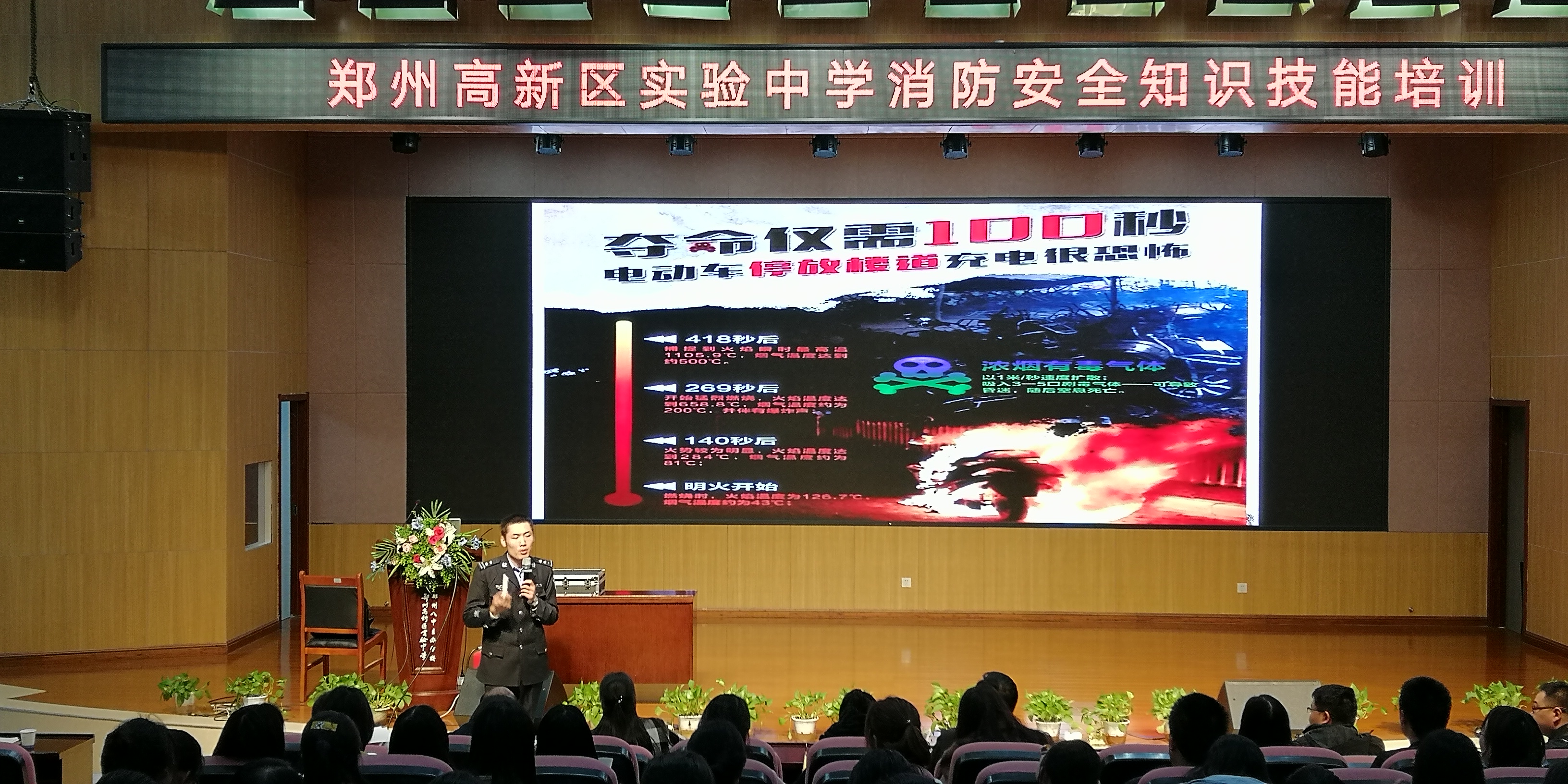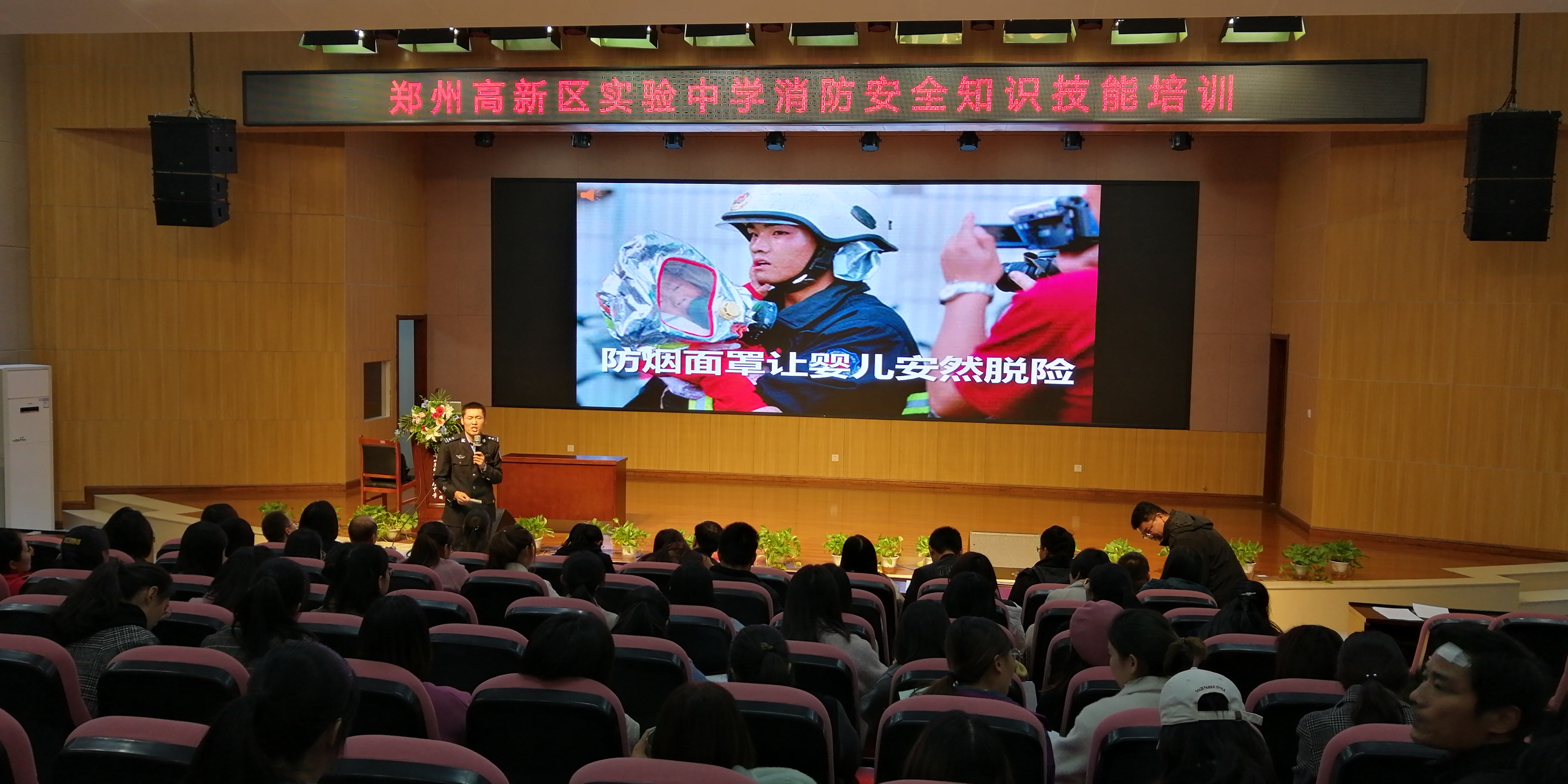 为营造安全的校园环境,提高全校教职工在面对火灾时的自救自护能力,郑州高新区实验中学于11月18日下午召开了消防安全知识技能培训会。学校邀请到了河南省安居防火宣传中心特级教员李俊良来展开此次培训,会议由高新区实验中学副校长王唯光主持,全体教职工参与了本次培训会。