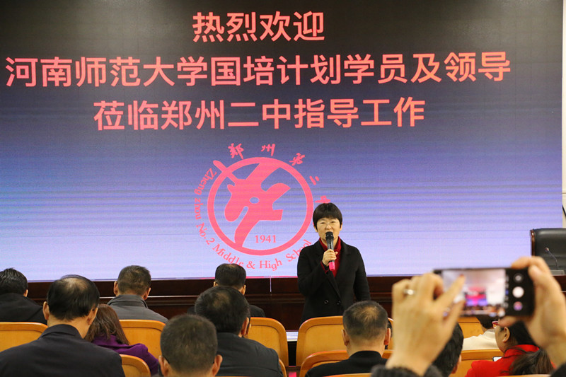 谢悦对河南师范大学国培计划学员来校考察表示欢迎,希望各位学员在考察的同时提出宝贵的意见和建议。谢悦为学员们作了题为《开放办学视域下的教育信息化实践》的主题报告,介绍了郑州二中在信息化背景下人才培养模式的构建,推动基于互联网的教育服务模式的形成,加快信息时代下学校教育治理模式的优化。