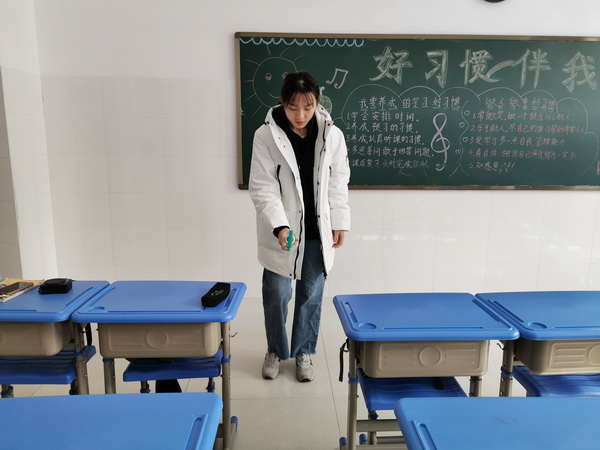 老师进行班内消杀工作