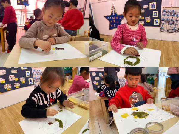 生活即教育。种子与人们的生活紧密相连,种子食品更是人们食物的主要来源。主题开展活动中,孩子们通过和爸爸妈妈共同查阅资料、与同伴合作、师幼讨论、区域活动等,不仅认识了各种各样种子的名称、形状、作用,了解了 “种子藏在哪里”、“哪些种子可以吃”、“种子的传播方式”、“哪些食品是用种子做成的”等知识,也在采集种子、制作种子标本、玩种子镶嵌画、品尝种子食品等过程等中深刻感受到了种子在人们生活中的作用,更重要的是培养了孩子们乐意与同伴分享的意识,体验到了分享、合作、交流的乐趣,激发了他们热爱自然、热爱生活的美好情感。