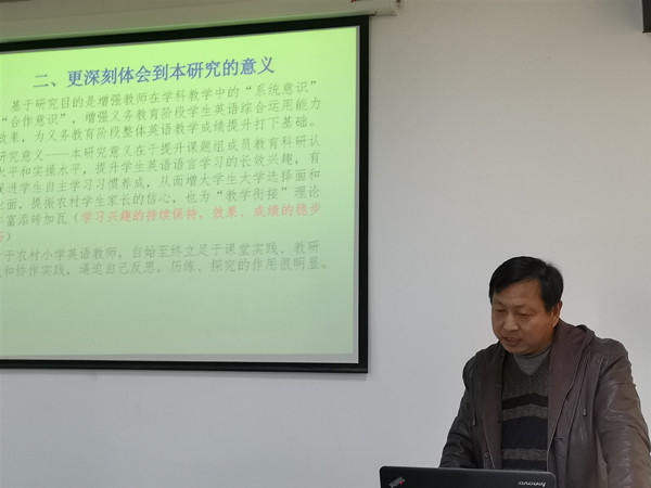 首先,2019年河南省农村学校应用性教育科研课题组成员王晓娜就《基于学生核心素养下小学高段语文“单元整体教学”实施路径研究》课题研究工作的主要进展、阶段性研究成果、主要创新点、存在问题、下一步计划、可预期成果等方面进行了详细汇报。接下来,2019年郑州市课题组韩思思、王培洋进行了中期报告汇报。韩老师就语文文本绘本化进行了有效的探索,提出了课题研究中存在的困惑和需要指导的问题,其阶段性成果有独到的见解。王老师在中期报告汇报中指出,英语课堂的衔接要注重学生的口语训练,日常生活英语化,促进学生口语水平的提高。2019年登封市课题组王倩倩、杨瑞银、王巧鸽也就各自的课题提出了自己的见解和困惑。王倩倩老师认为story time教学应立足课堂,充分发挥优学通、名师课例、同课异构等作用,激发学生学习英语的兴趣。杨瑞银老师从“本真课堂”入手,让学生从日常的生活入手,自己动手做物理实验,学生在实验与收获中能力得到提升。王巧鸽老师认为小学低年级写字研究要从学生写字习惯抓起,写字评价多样化,纠正学生的不良习惯,让学生“写一笔好字 做顶天立地中国人”。
