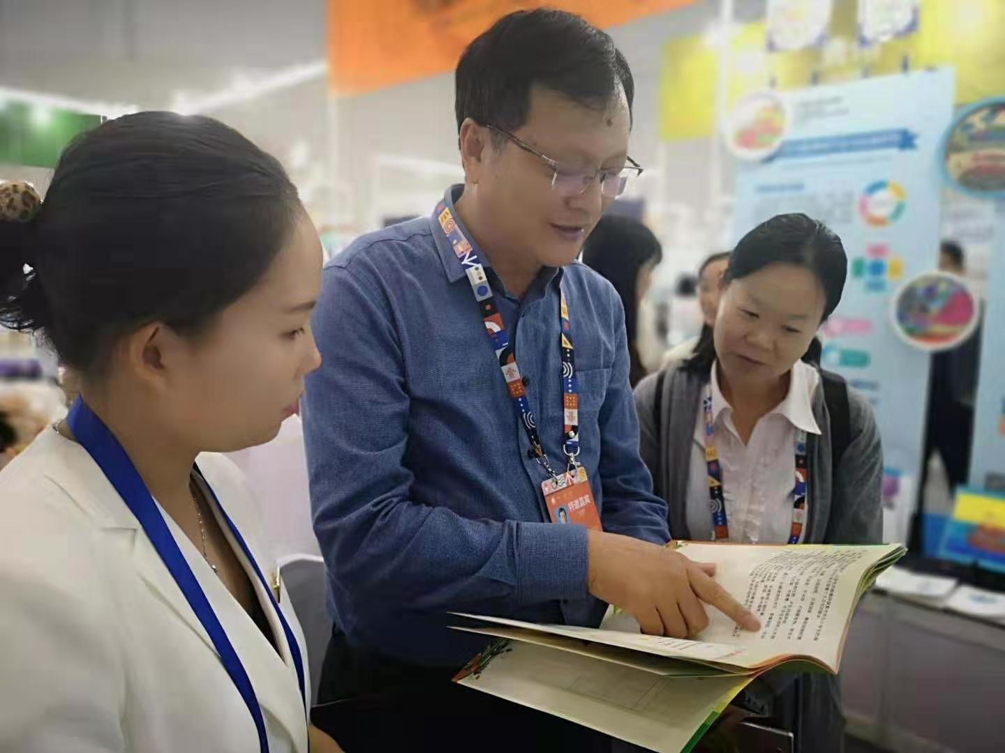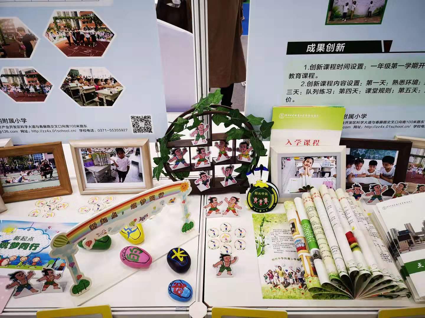 郑州高新区作为中部六省唯一一个国家基础教育课程改革实验示范区,一直致力于打造高品质创新教育。郑州中学附属小学春藤路校区在高新区高品质创新教育的总体要求下,积极研发和开设丰富多彩的课程体系来促进学生的全面发展,经过三年的探索和实践,一年级入校课程是成功案例之一。学校以从“幼”到“小”,藤宝“大变身”——一年级新生入学主题教育课程为展览教育创新成果,在工作坊,解说员苌宏老师从成果研发理论基础、课程研发背景、课程实施过程和课程评价方式四大方面对入学教育课程进行了详细介绍。学校突出入校课程实施过程向参观人员进行展示,以熟悉新环境、课堂规则训练、军训和养成教育为主题课程,使一个个“萌宝宝”悄然变身为“藤宝宝”。还通过入校课程手册、藤宝成长相册、好品质葫芦娃微型摆件、“成长的足迹”手绘彩石等多种作品展示课程的多彩性和童趣性。宣传版面上详细的课程介绍、展区上摆放的主题作品使众多参展观众驻足欣赏。大家纷纷拿出手机进行拍照,拿着成长手册细细翻阅,聆听解说员的详细讲解,对这样系统而又科学的入校课程非常感兴趣。20日上午,郑州高新区社会事业局副局长李国林一行亲临教博会指导学校的一年级新生入学主题教育课程创新成果。