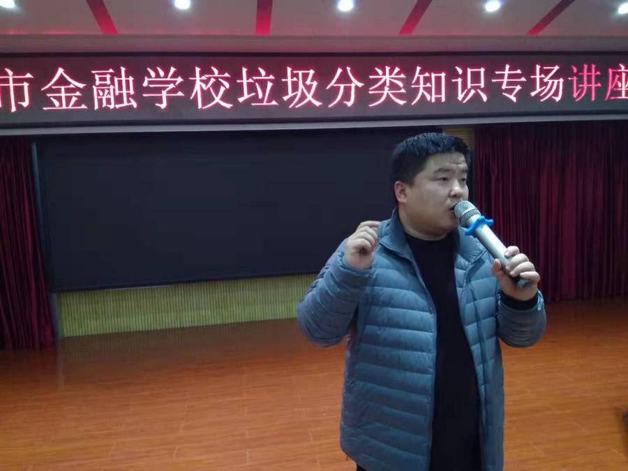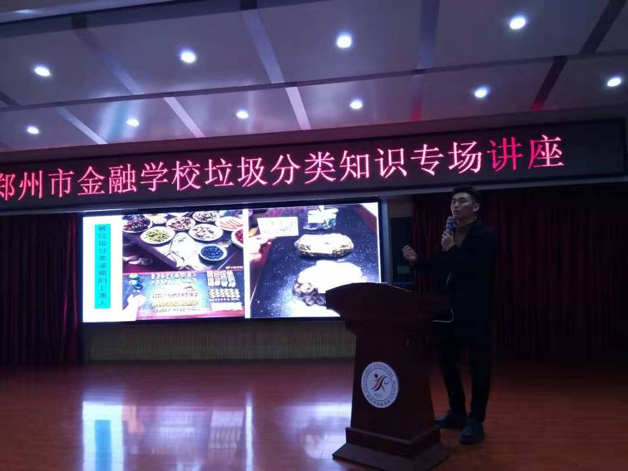 为进一步推进垃圾分类工作开展,提升学子对垃圾分类的知晓率和参与意识, 2019年11月27日晚,在郑州市金融学校融能楼阶梯教室,该校近200名学生代表,作为学校“垃圾分类的种子”代表,参加了一场由“百川环境公司”专家杜金老师主讲的垃圾分类讲座。