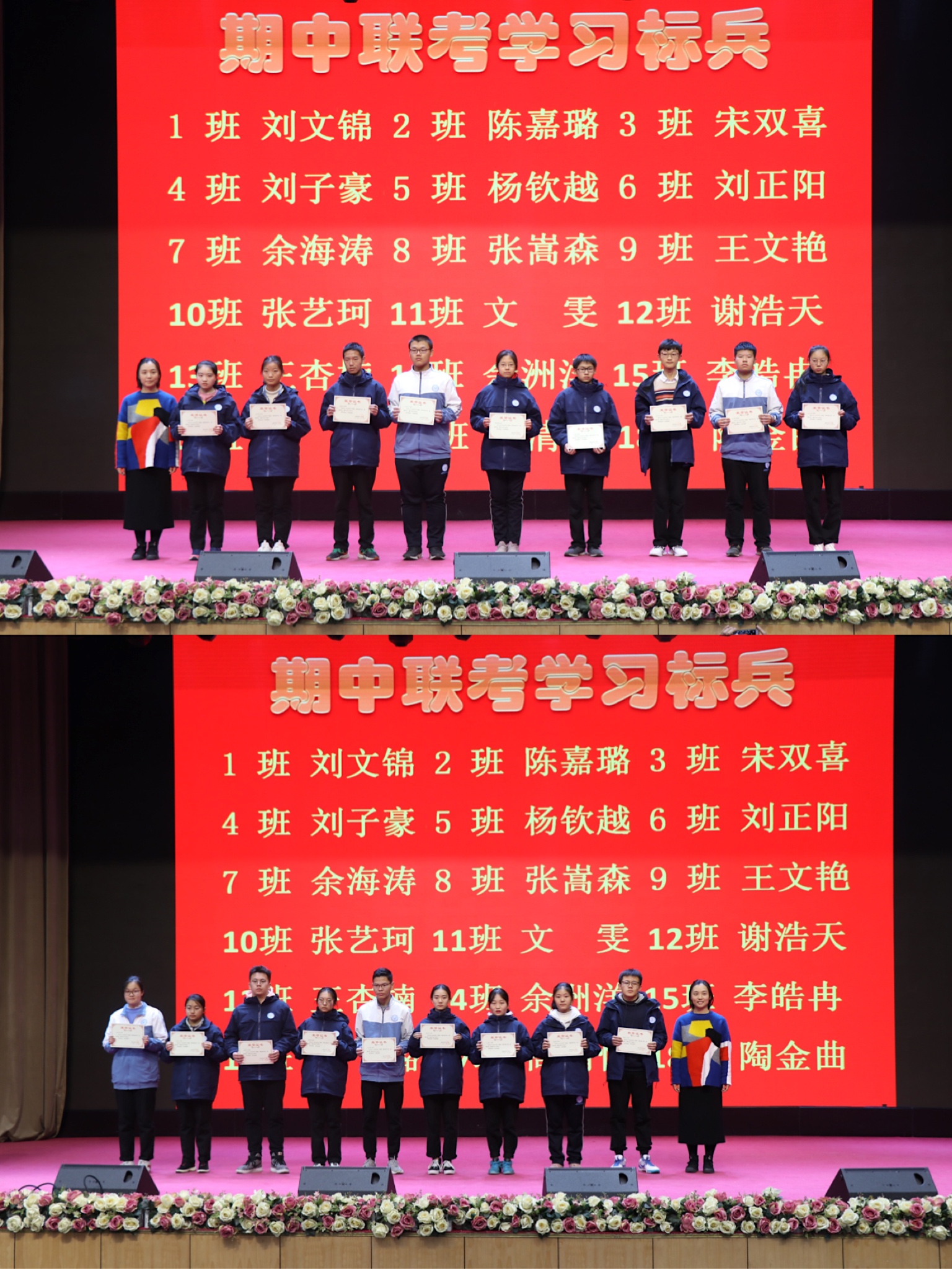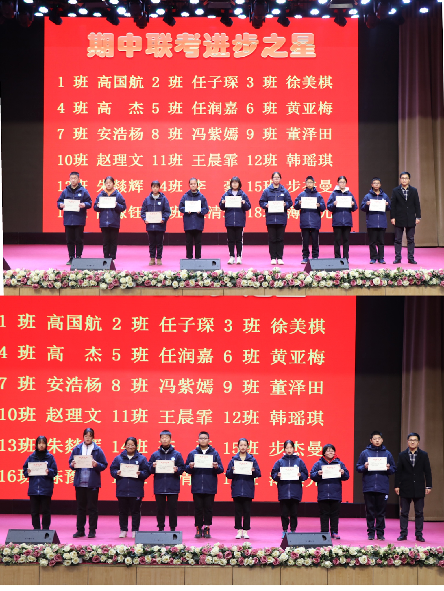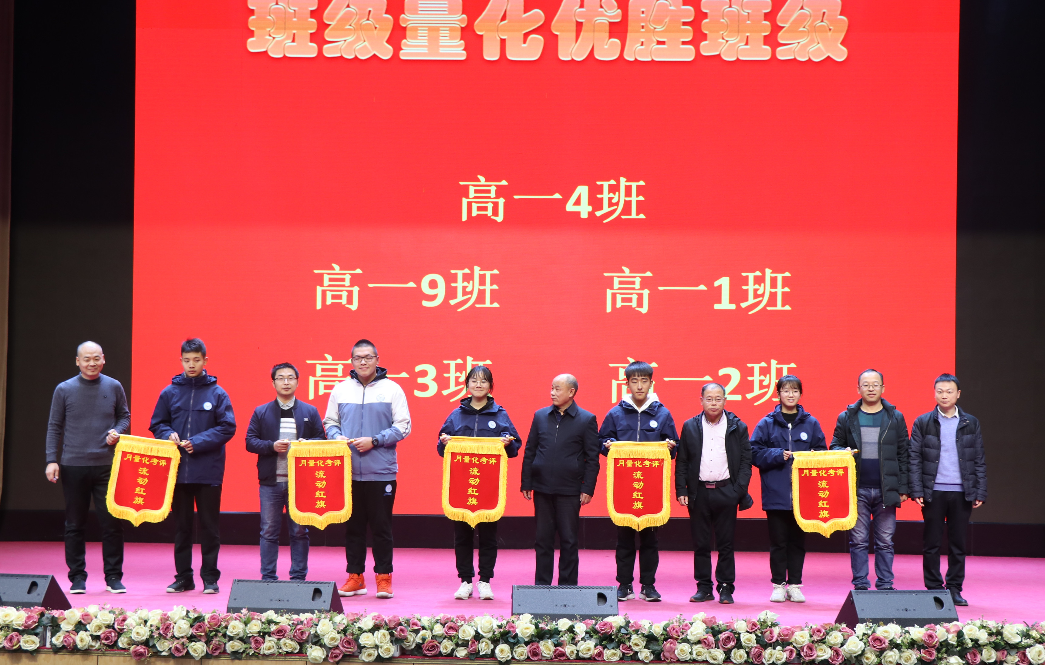 办公室主任刘志勇为期中联考优胜班集体颁奖并合影